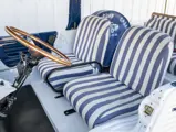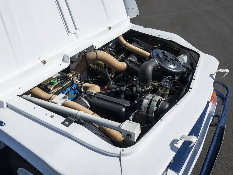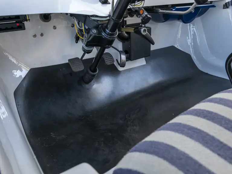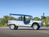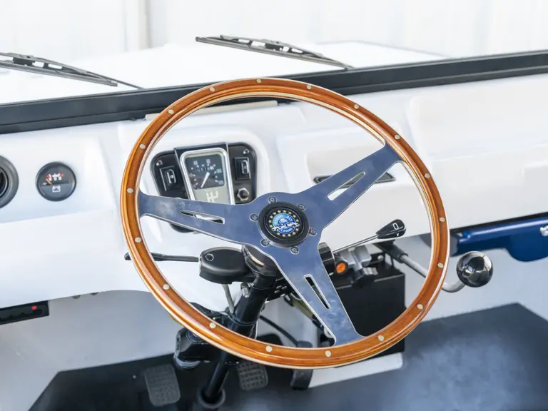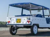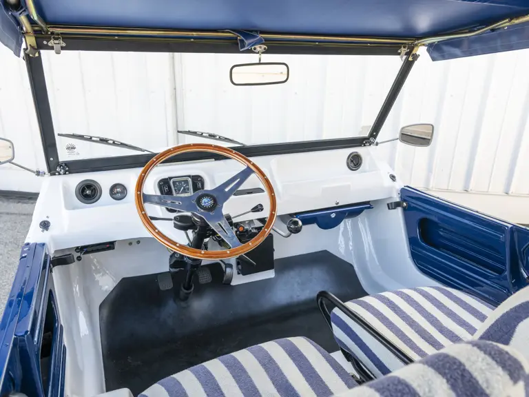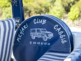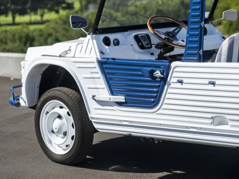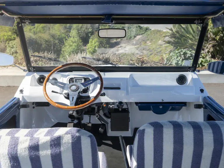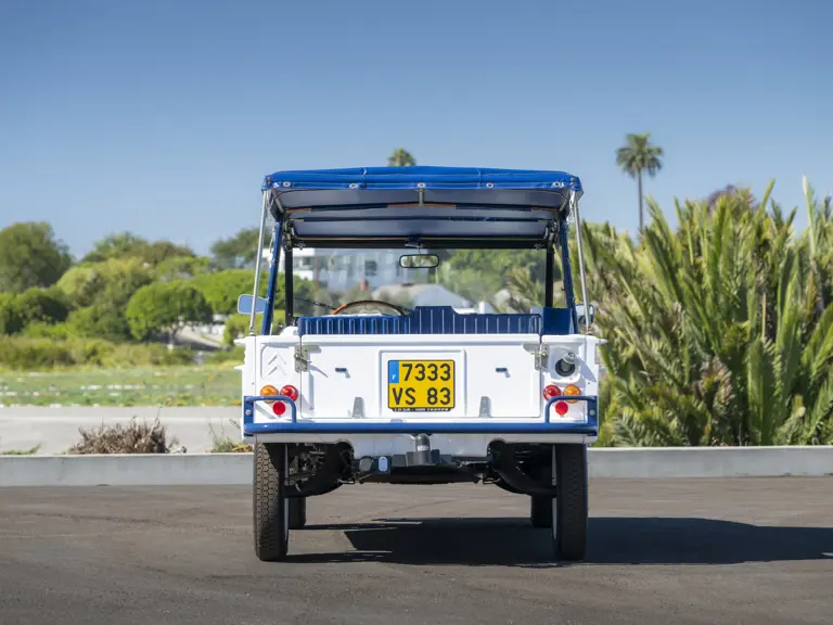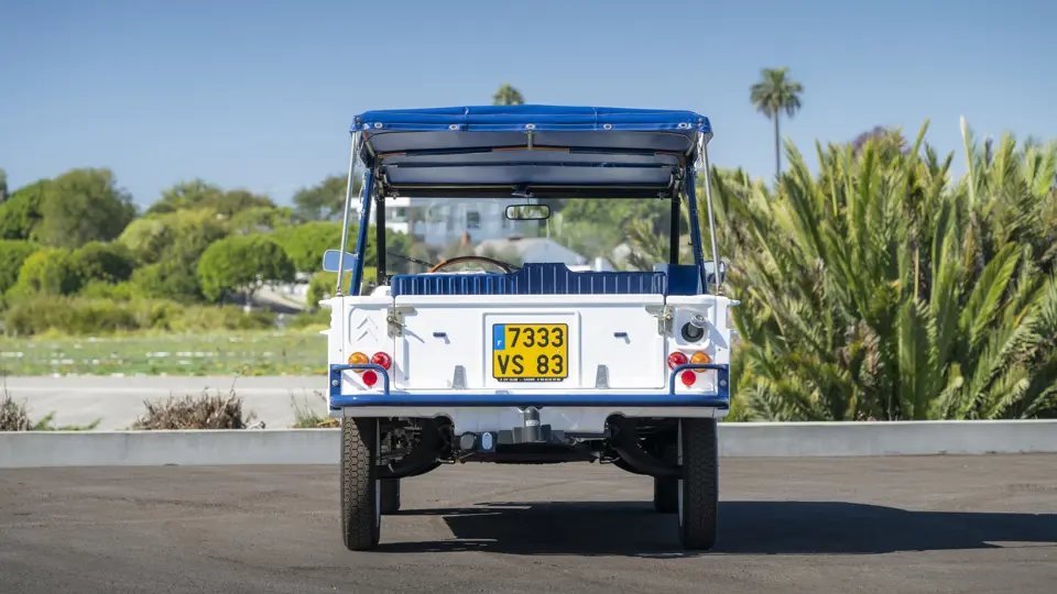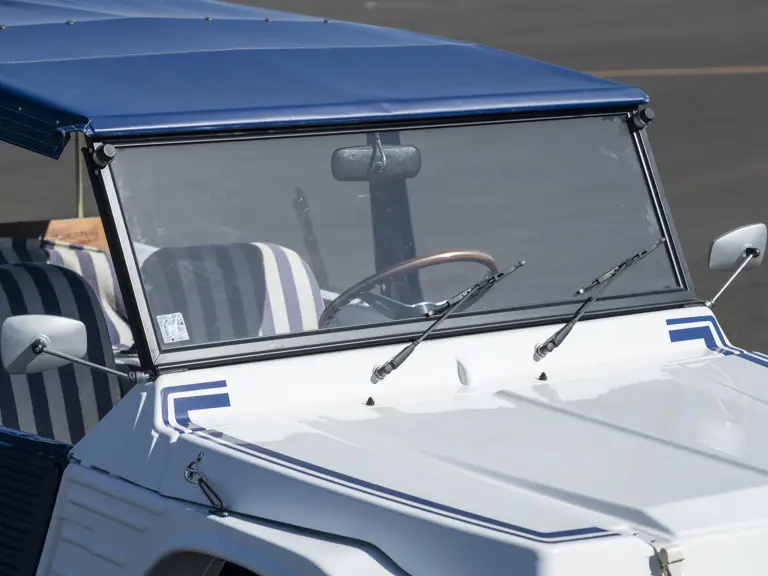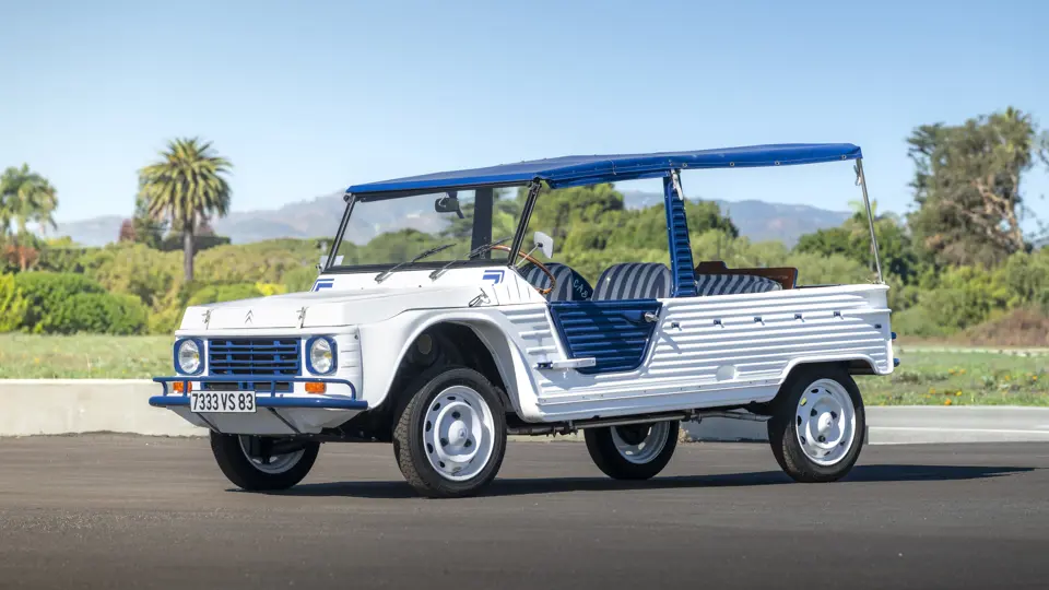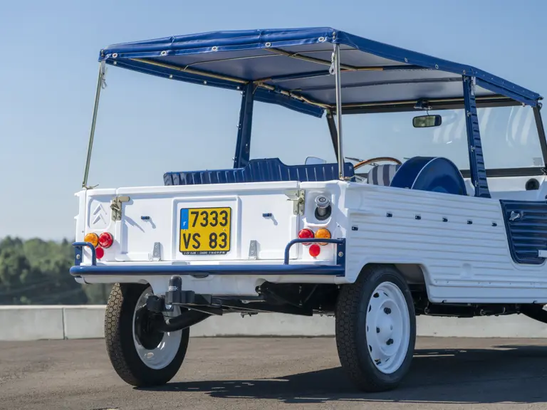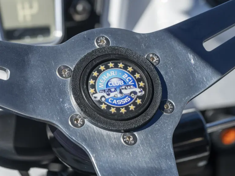 The Méhari on offer is delightful to behold, reportedly restored by the renowned 2CV Méhari Club Cassis, Citroën specialists based on the French Riviera. Finished in Beige Hoggar, named for the sun-baked Hoggar Mountains of Southern Algeria, the car exudes a distinctly Mediterranean charm, while nautical-inspired details, including striped terrycloth fabric upholstery and warm wood paneling, reflect its playful spirit.