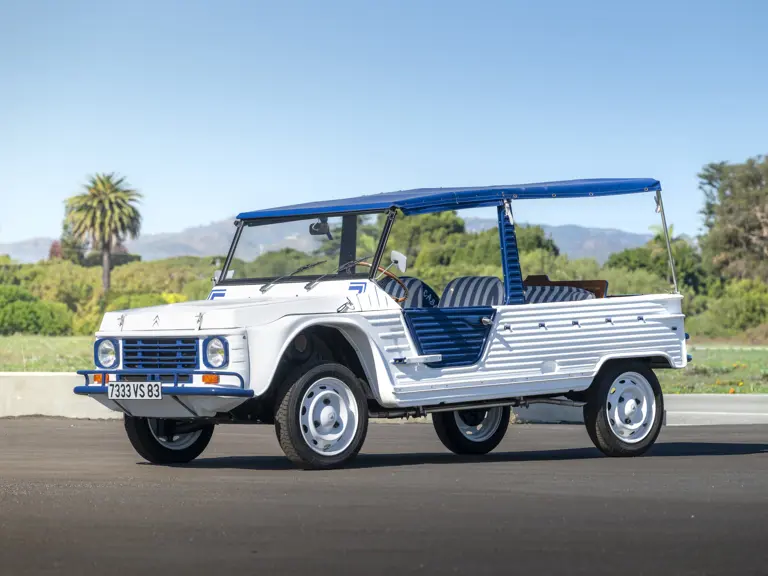Produced until 1987, the Méhari appealed to those who prized lightness of spirit and a sense of adventure over conventional refinement. Brightly colored and minimalist in design, it has become emblematic of a carefree era of motoring.