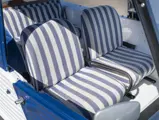 - Delightfully nautical finishes of Beige Hoggar over blue striped terrycloth trim