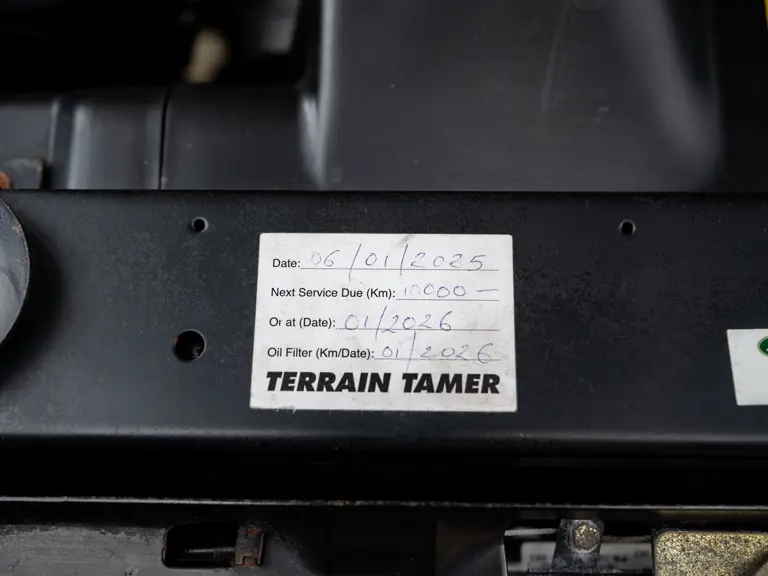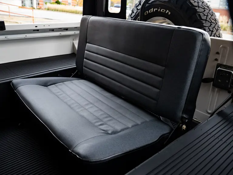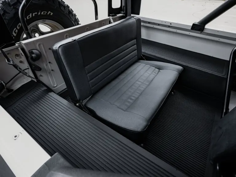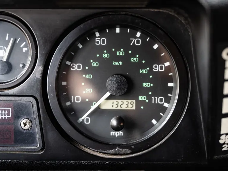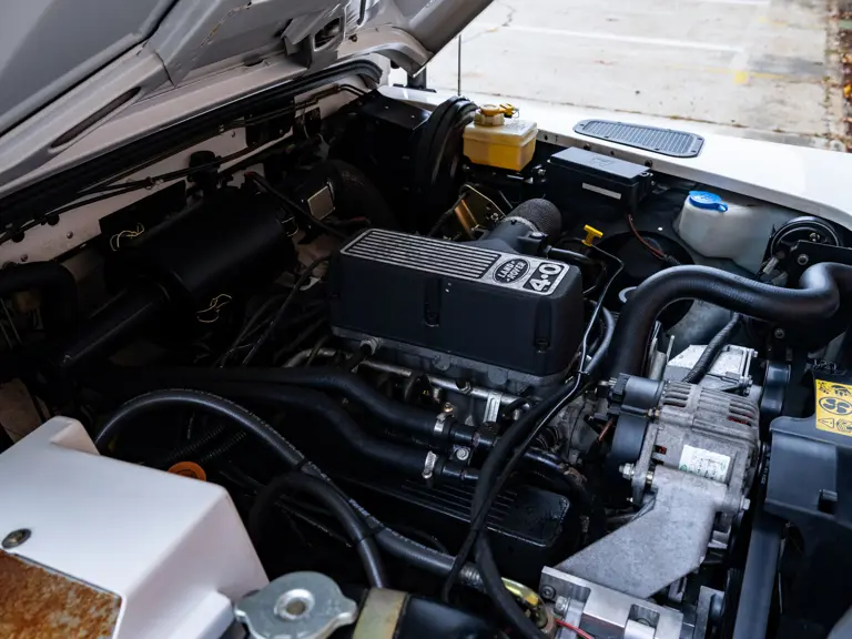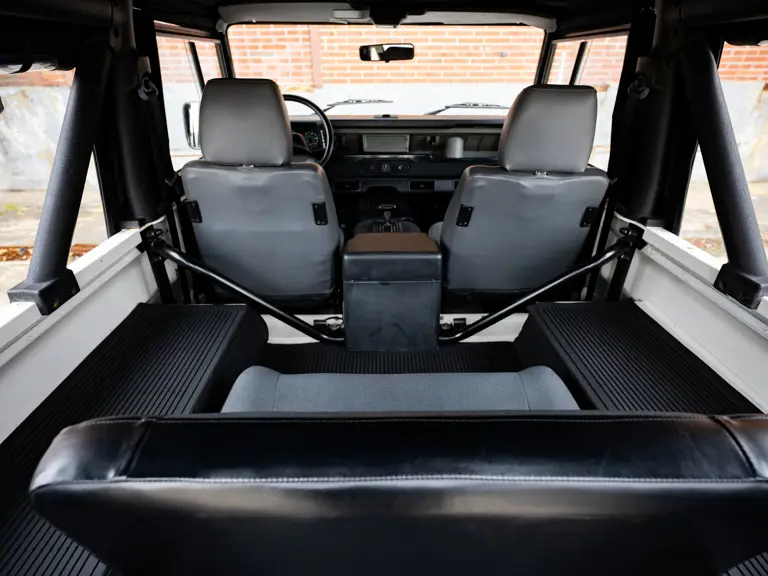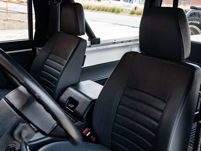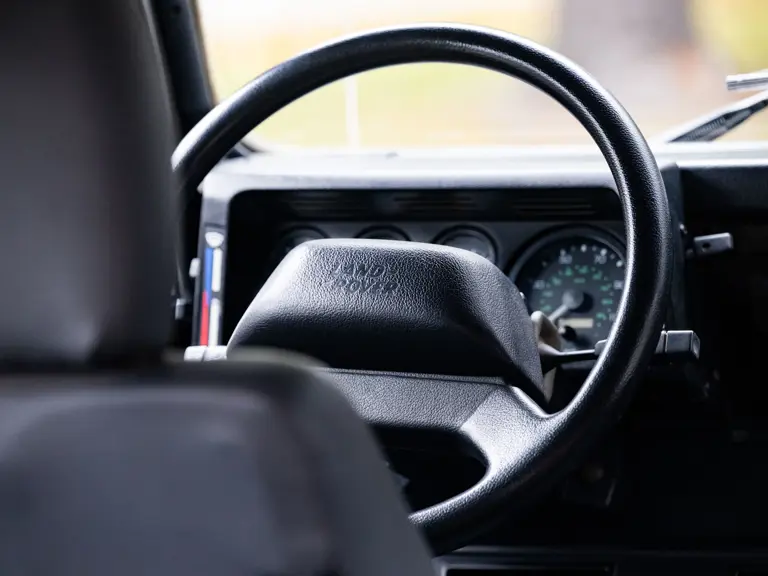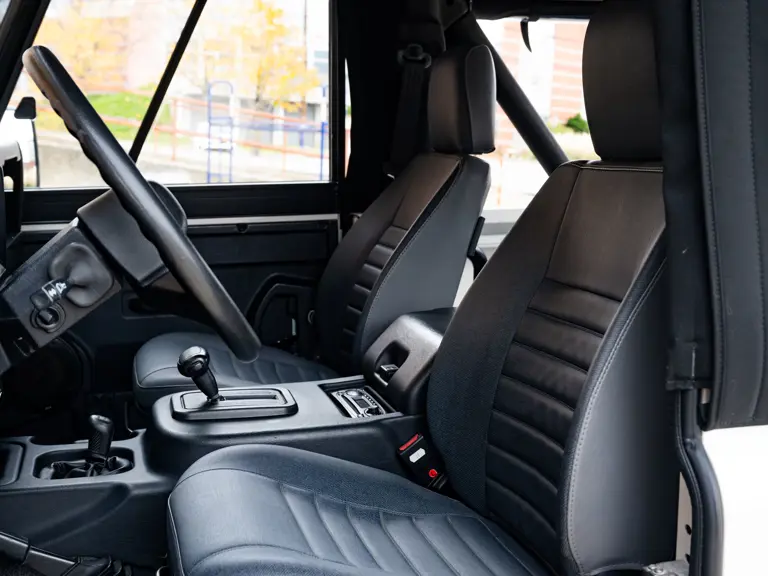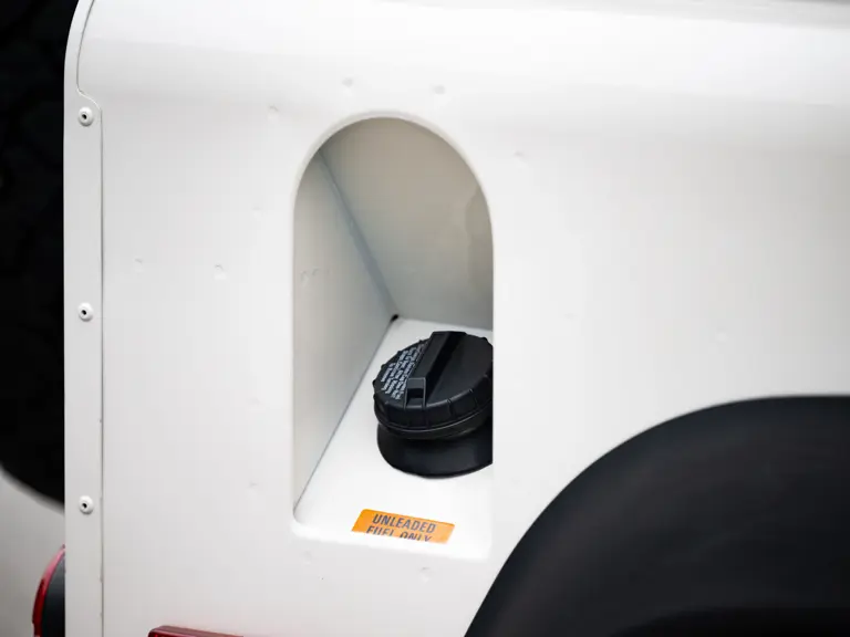 Acquired by the prior owner in 2004, it was shipped to the UK in 2008. Though little-used, this Land Rover has been carefully maintained over the years. At the time of cataloguing, it displayed fewer than 1,325 miles, and it is reported to have never been involved in an accident. Consistent with this very limited use, it retains its factory paintwork and interior trimmings. In 2025, the Defender’s current caretaker treated it to over $19,000 in mechanical work and improvements, notably including fitment of a new soft-top and tires, as well as service to the cooling, fueling, braking, and suspension systems, with new parts fitted as needed. Further, the tachometer was repaired, and a new rear bench seat and rear cargo mat were installed. Invoices for this work are on file. It is also accompanied by a BMIHT certificate and English-language owner’s manuals.