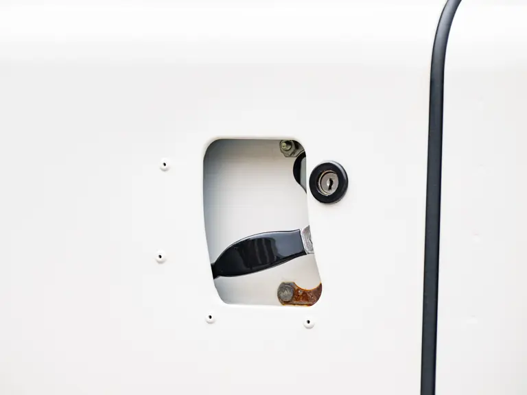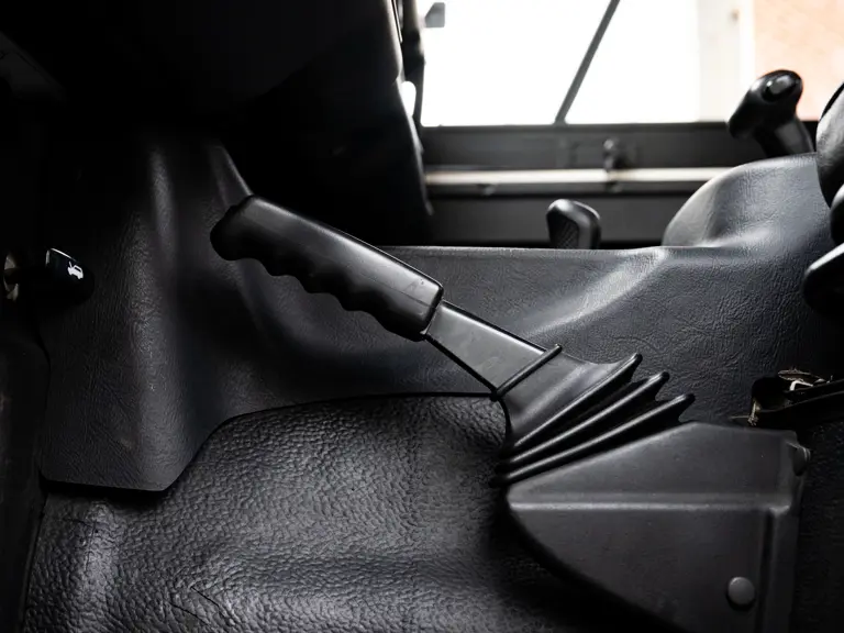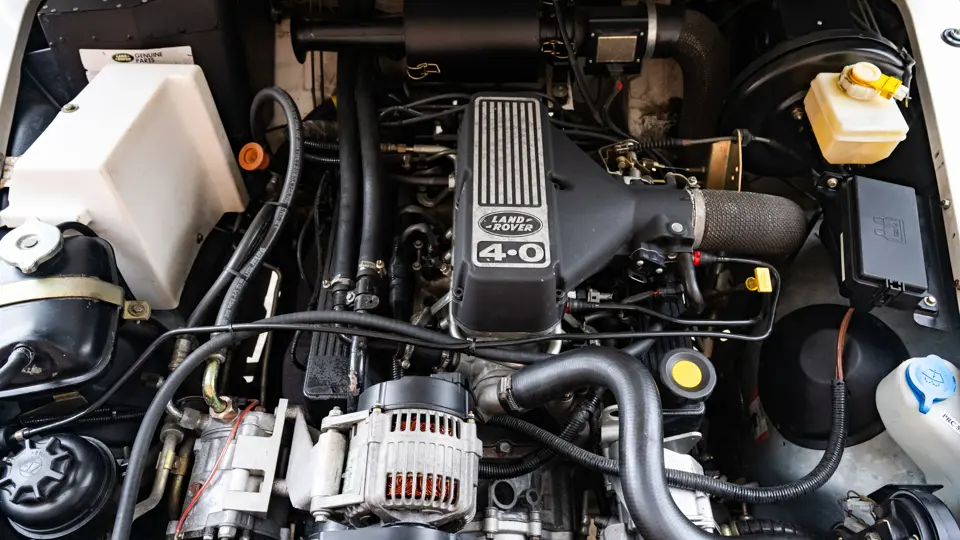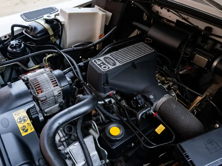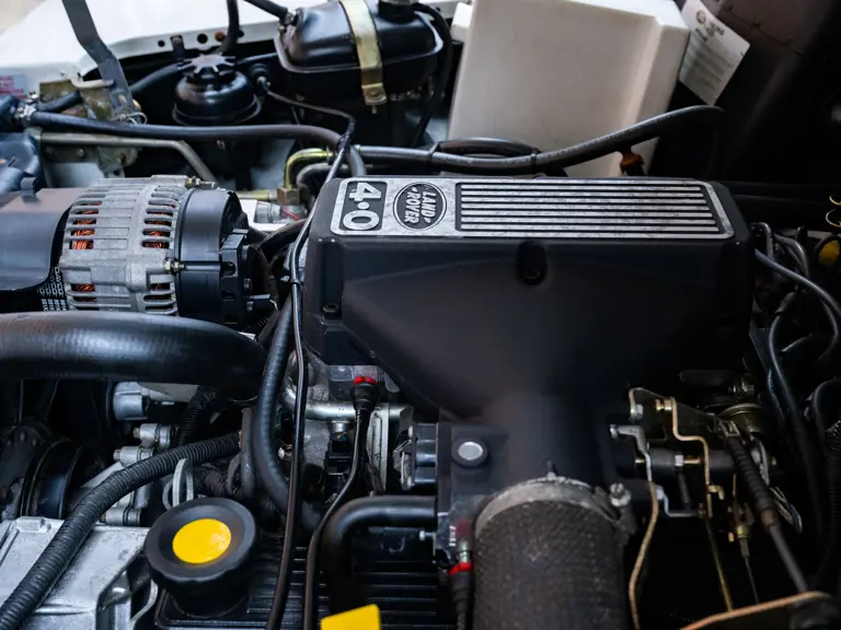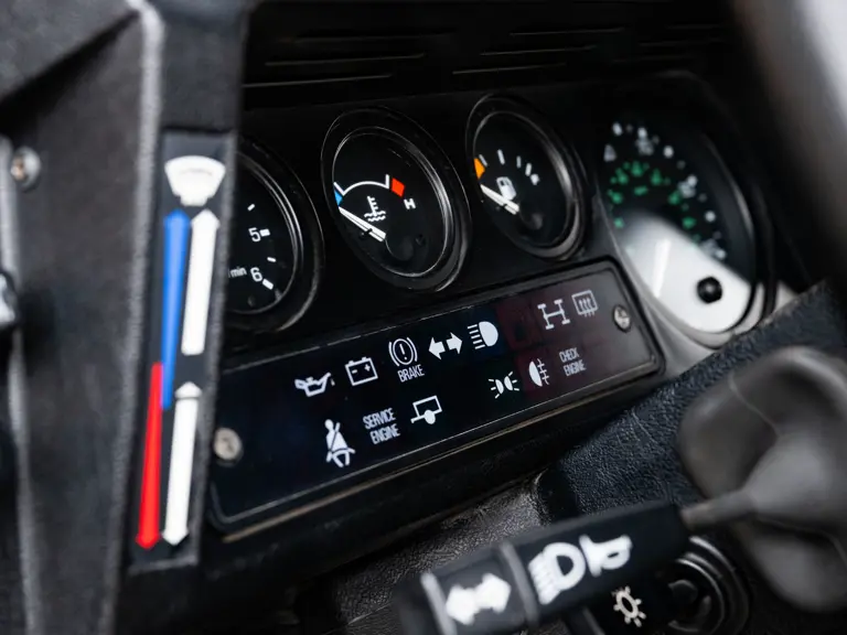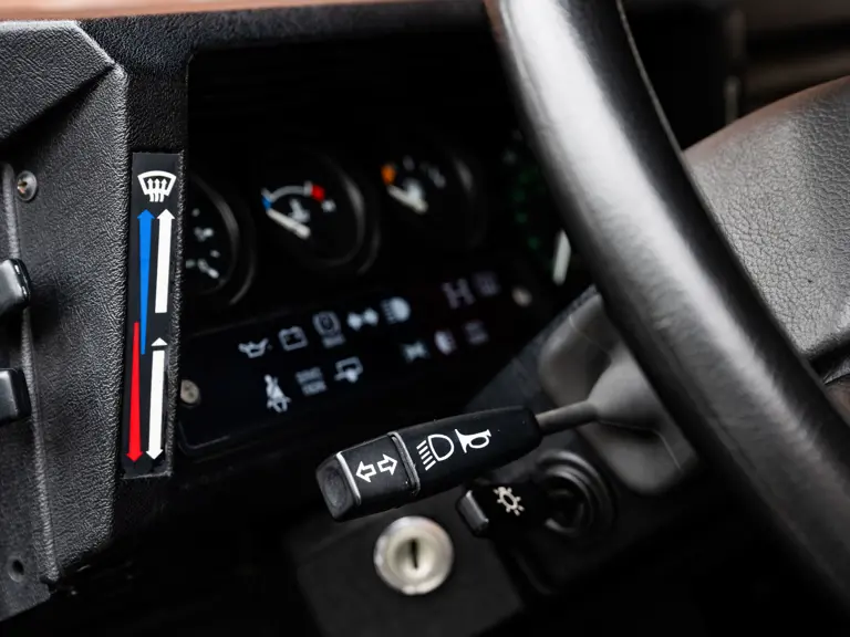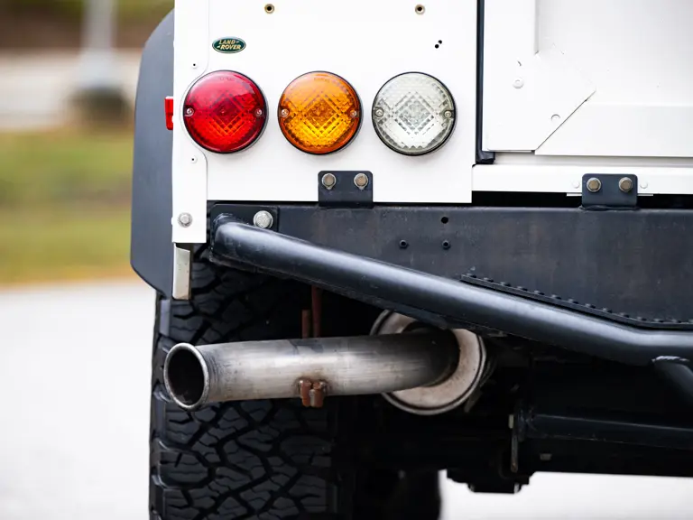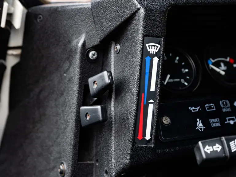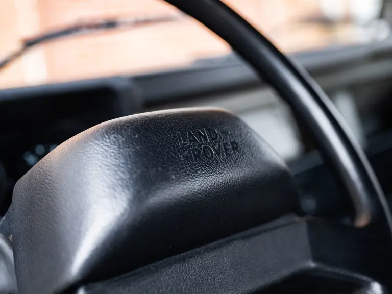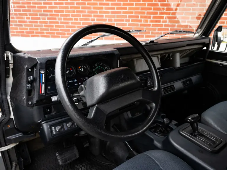 Fittingly for a vehicle with a reputation for adventure, this NAS Defender 90 has itself done a bit of globe-trotting. As confirmed by its accompanying British Motor Industry Heritage Trust certificate, it was completed at Land Rover’s Solihull plant on 21 May 1997. Finished in Alpine White over a Grey vinyl interior, it was a left-hand-drive vehicle built to North American export specification. However, it was delivered instead to Paris, France; failing to find a buyer there, it was eventually transferred off the mainland to a Land Rover dealer on the island of Corsica.