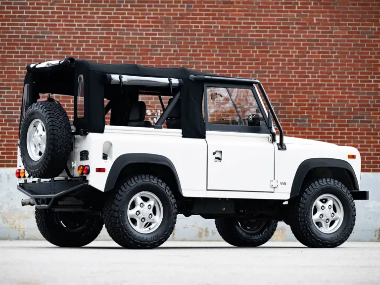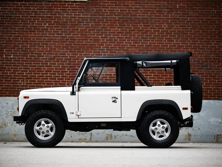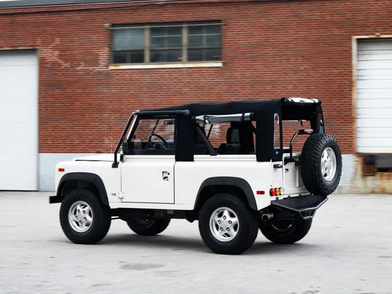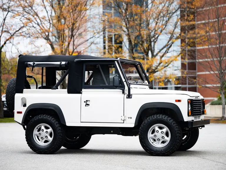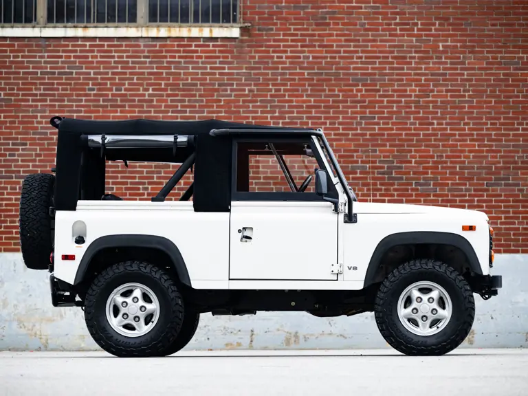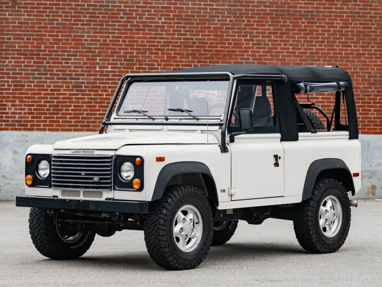Land Rover developed the North American Specification, or NAS, Defenders for sale in the US and Canadian markets beginning in 1994. These benefited from an external roll cage and niceties such as air conditioning. Although both Defender 90 and 110 variants were offered at the outset, this was soon streamlined to only the Defender 90. Power came initially from a 3.9-liter V-8 paired with a five-speed manual gearbox, but by 1997 this had been upgraded to a 4.0-liter distributor-less V-8 and a ZF four-speed automatic transmission. After the 1997 model year, US regulations made selling the Defender in the American market infeasible, and exports ceased. The nameplate would not return officially to America, in the form of a radically modern luxury SUV, until 2020.