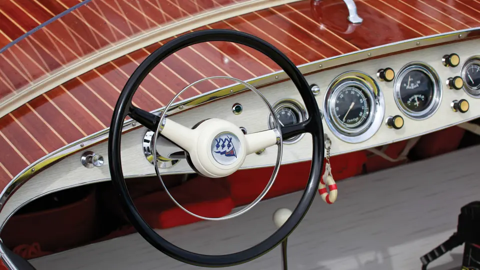 One of the most successful of all Riva wooden runabouts was the Ariston, named for the celebrated Milan movie palace and translating from Greek to “the best”; not humble, perhaps, but in the end, an apt choice. The Ariston combined Riva’s original runabout design with inspiration from Chris-Craft’s delicately rounded “barrelback” stern, giving it lightness and elegance.