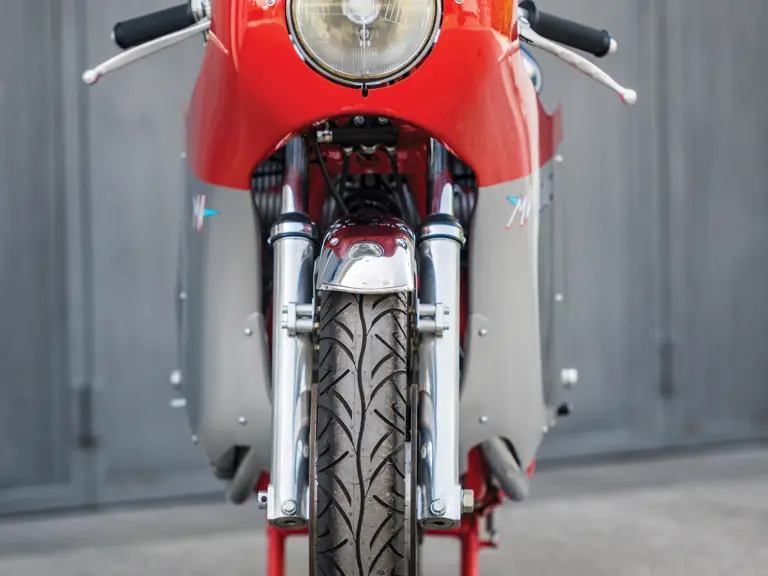 Giovanni carried on his father’s legacy by continuing to modify MV Agusta road bikes into powerhouse machines now famous in the motorcycling world. The bike offered here is one such creation, with a rebuilt 861-cc engine as well as chain-drive conversion.