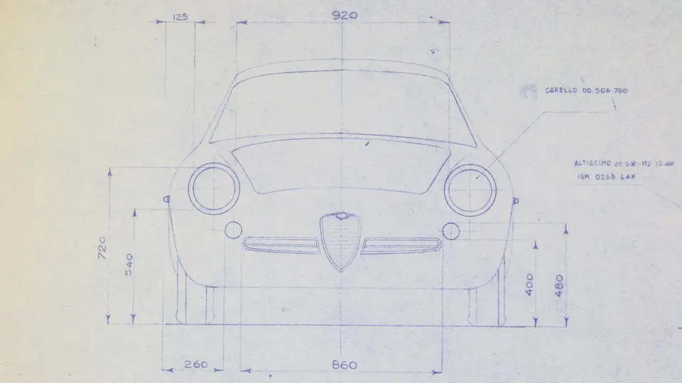 Offered from the Zagato Archive, this is a set of original blueprints for the Alfa Romeo Giulietta SZ, including Coda Tronca, Coda Tonda, and the Spider Sport.