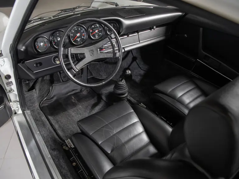 In addition to its numbers-matching engine and gearbox, a close inspection of the under-dash area reveals the correct Porsche production number; moreover, this 911 retains its original factory-applied coat of Grand Prix White exterior paint (save for the repainted front splitter, which is often worn over the course of routine driving) and its original Black leatherette interior. Further emphasizing its highly original presentation, it is accompanied by its original, Italian-language owner’s manual.