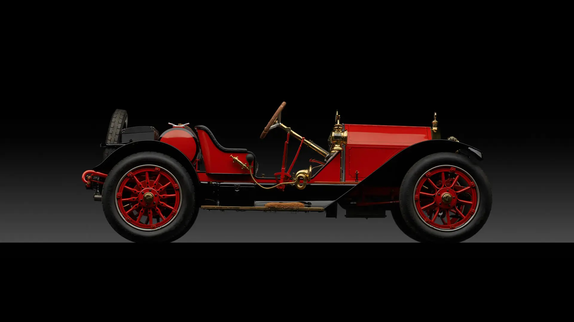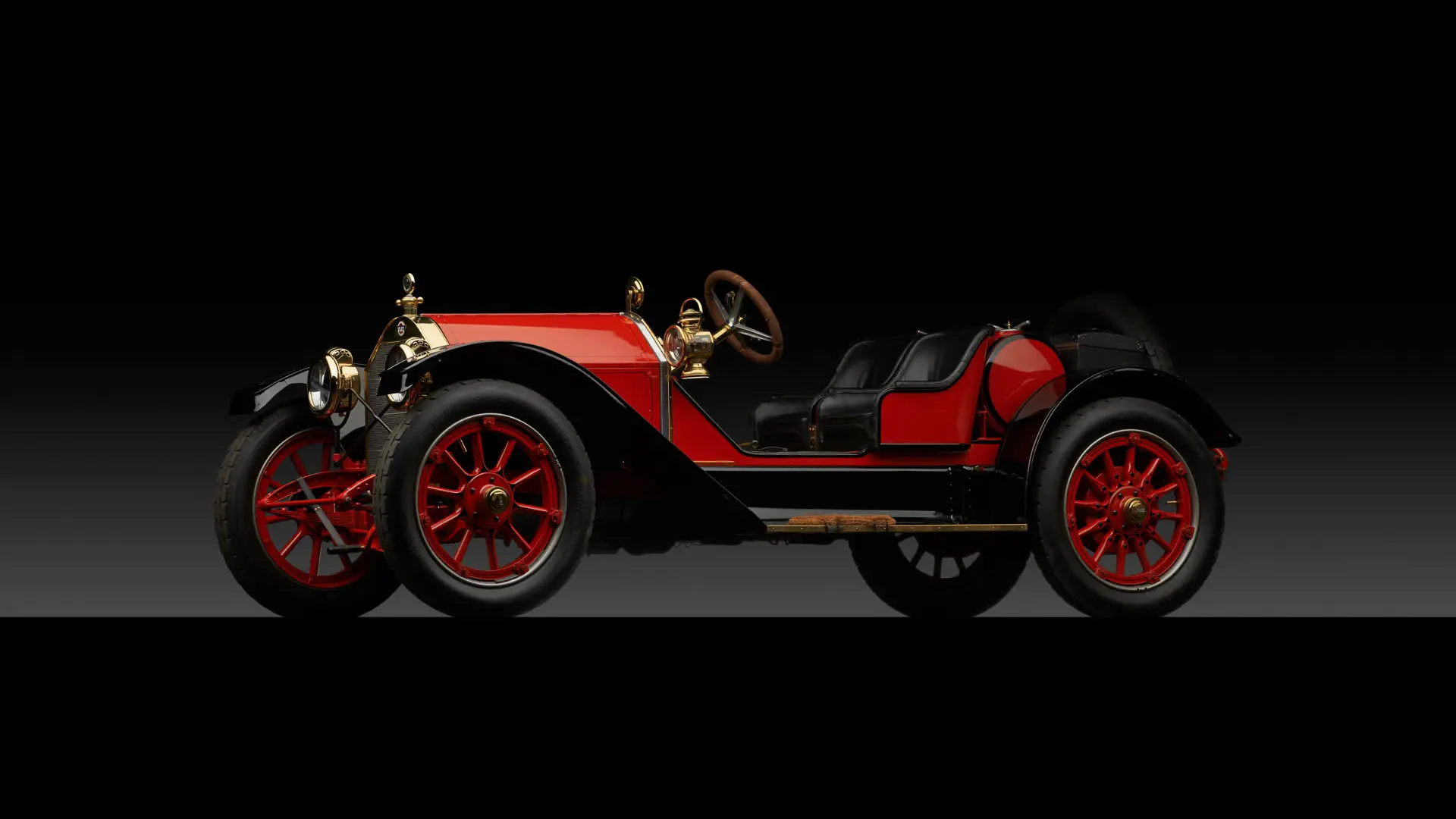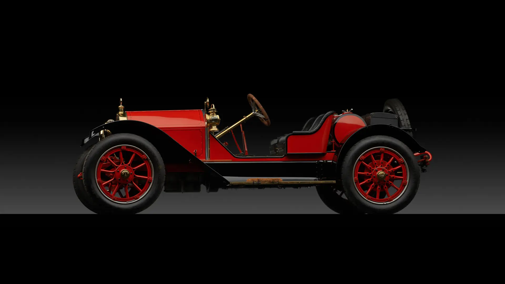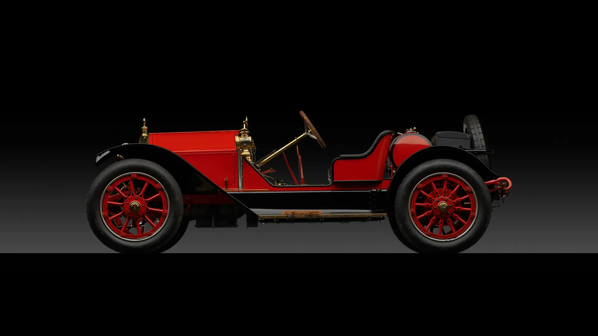 The production version of that car was the machine offered here, the Model A Bear Cat of 1912. (This year only, the Bear Cat was spelled with two words by the factory.) It was powered by a Wisconsin-built mill that Stutz historian Raymond Katzell referred to as “of appropriate size, that had already accumulated a splendid record for stamina and performance in racing.” Harry Stutz’s mechanical brilliance increased the engine’s performance to an estimated 60 horsepower, which was fed to the rear wheels through a transaxle—a technological advancement that was some five decades ahead of its time. When installed on a 120-inch wheelbase chassis with the Bear Cat’s barely-there bodywork, which was just seats and tanks, the Wisconsin T-head four resulted in superb speed from an already extremely lightweight performance-designed chassis.