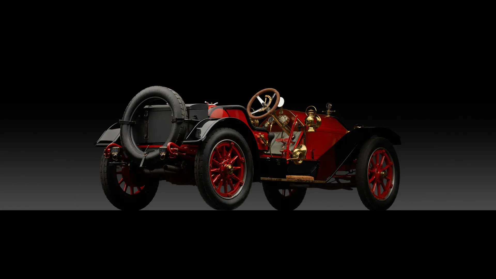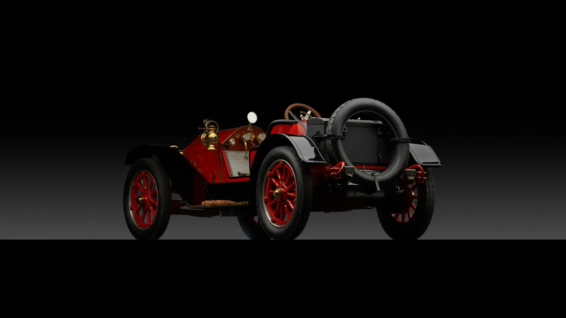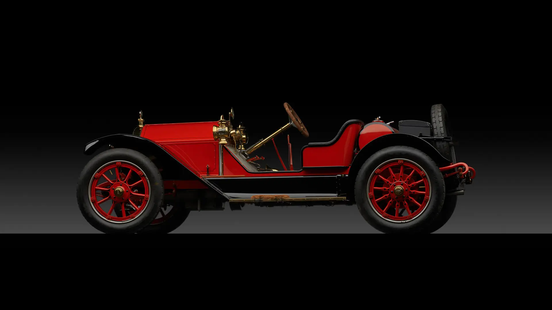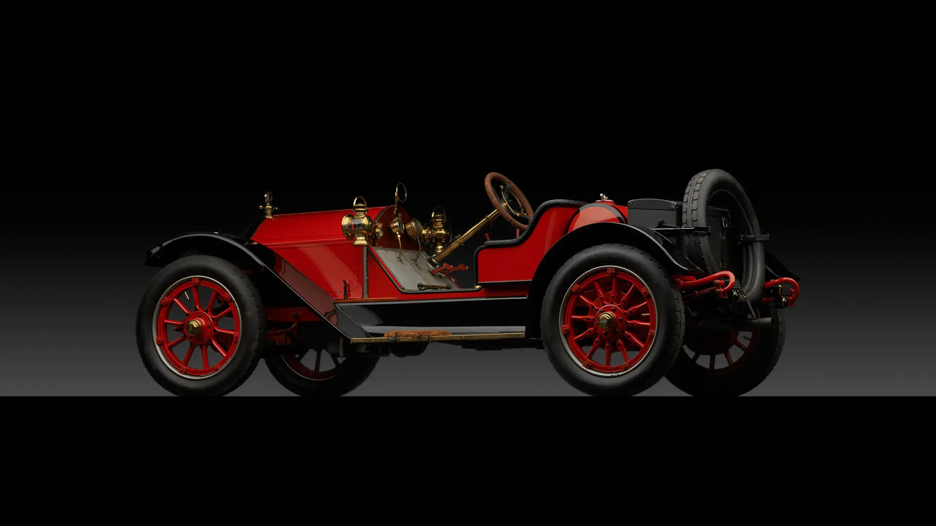 The production version of that car was the machine offered here, the Model A Bear Cat of 1912. (This year only, the Bear Cat was spelled with two words by the factory.) It was powered by a Wisconsin-built mill that Stutz historian Raymond Katzell referred to as “of appropriate size, that had already accumulated a splendid record for stamina and performance in racing.” Harry Stutz’s mechanical brilliance increased the engine’s performance to an estimated 60 horsepower, which was fed to the rear wheels through a transaxle—a technological advancement that was some five decades ahead of its time. When installed on a 120-inch wheelbase chassis with the Bear Cat’s barely-there bodywork, which was just seats and tanks, the Wisconsin T-head four resulted in superb speed from an already extremely lightweight performance-designed chassis.