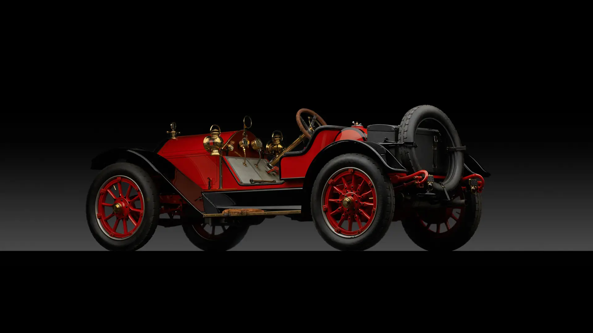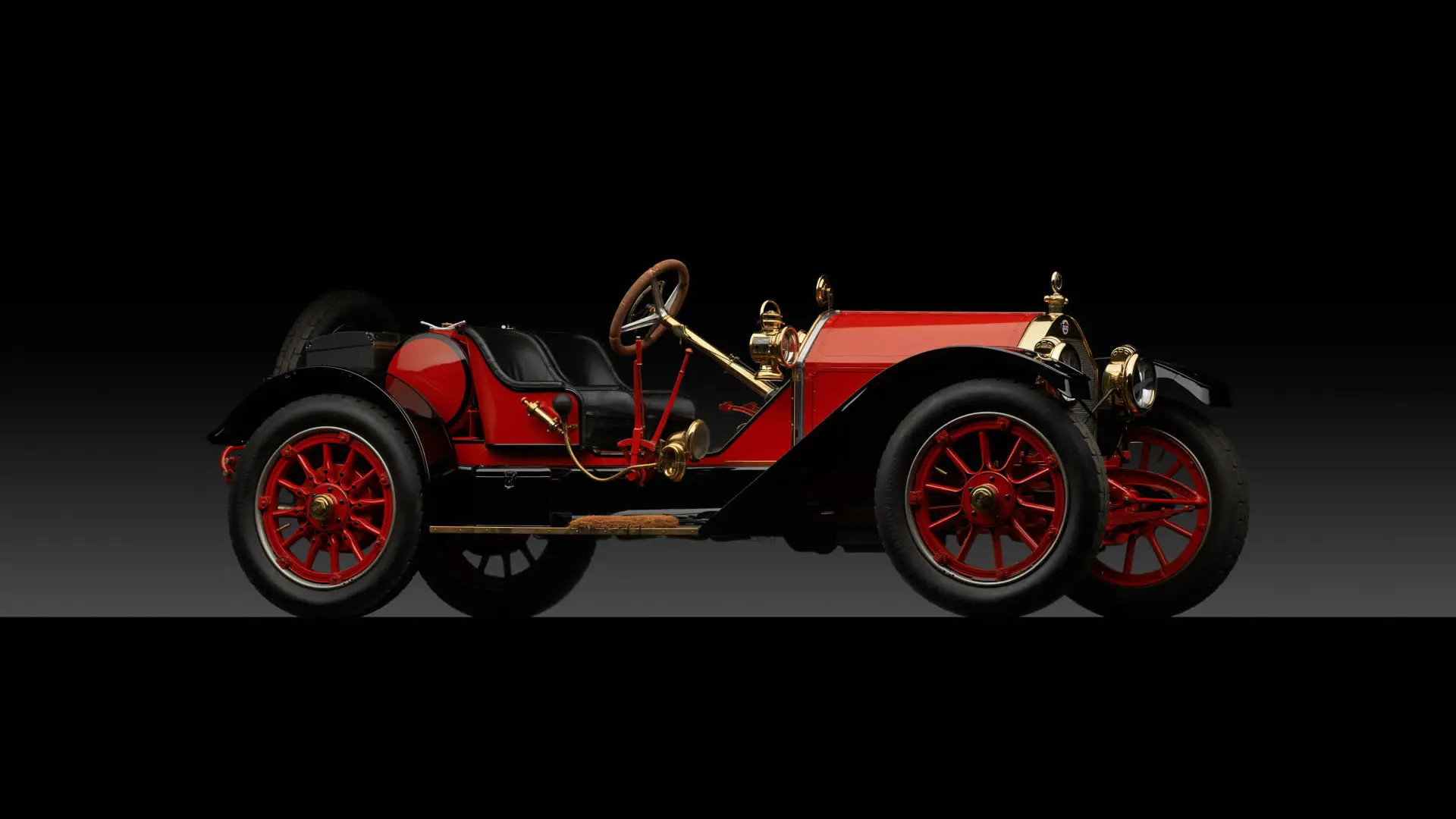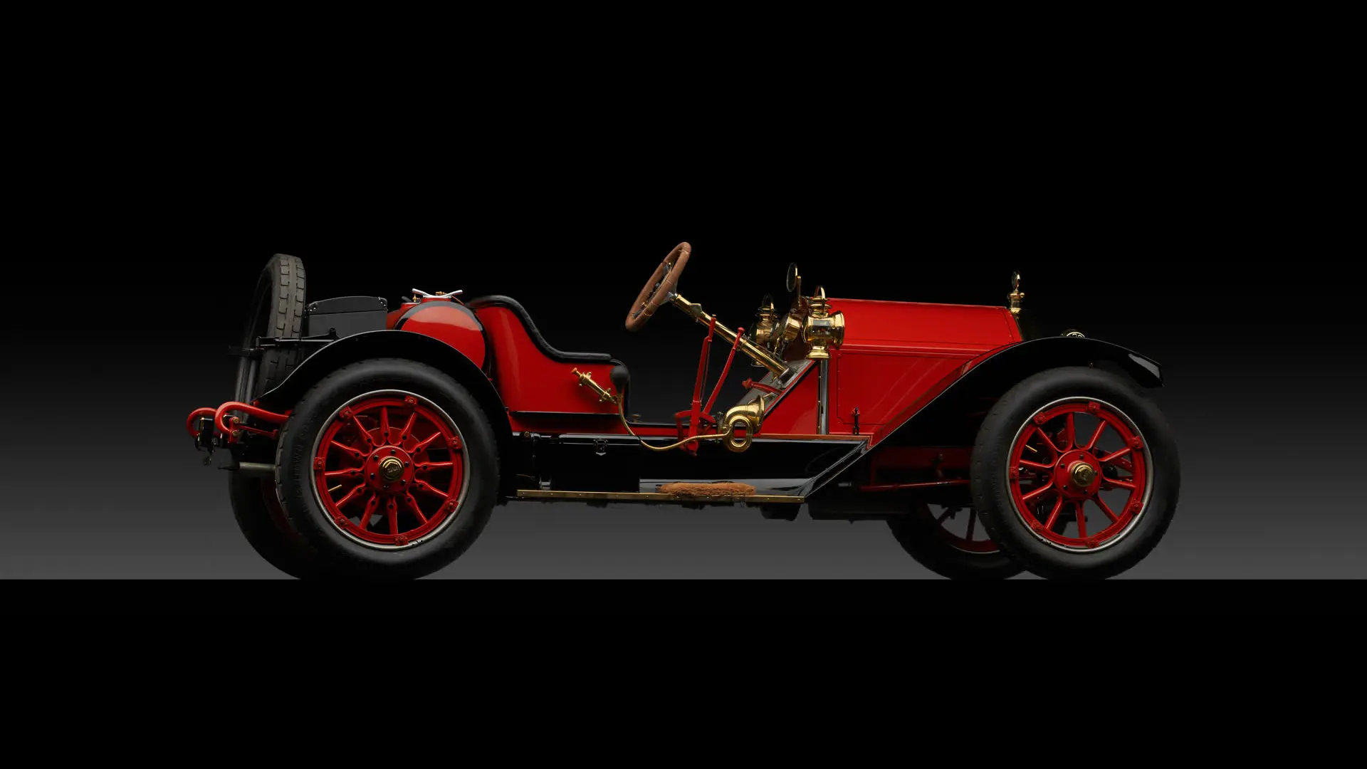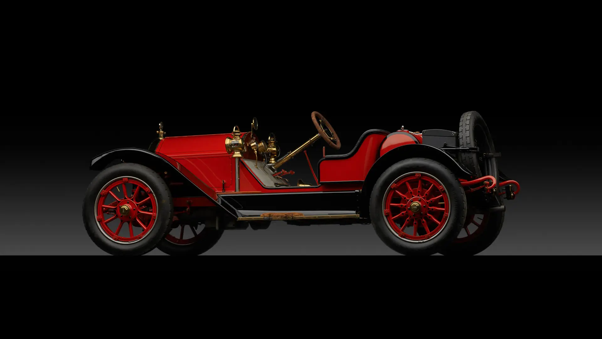 The production version of that car was the machine offered here, the Model A Bear Cat of 1912. (This year only, the Bear Cat was spelled with two words by the factory.) It was powered by a Wisconsin-built mill that Stutz historian Raymond Katzell referred to as “of appropriate size, that had already accumulated a splendid record for stamina and performance in racing.” Harry Stutz’s mechanical brilliance increased the engine’s performance to an estimated 60 horsepower, which was fed to the rear wheels through a transaxle—a technological advancement that was some five decades ahead of its time. When installed on a 120-inch wheelbase chassis with the Bear Cat’s barely-there bodywork, which was just seats and tanks, the Wisconsin T-head four resulted in superb speed from an already extremely lightweight performance-designed chassis.