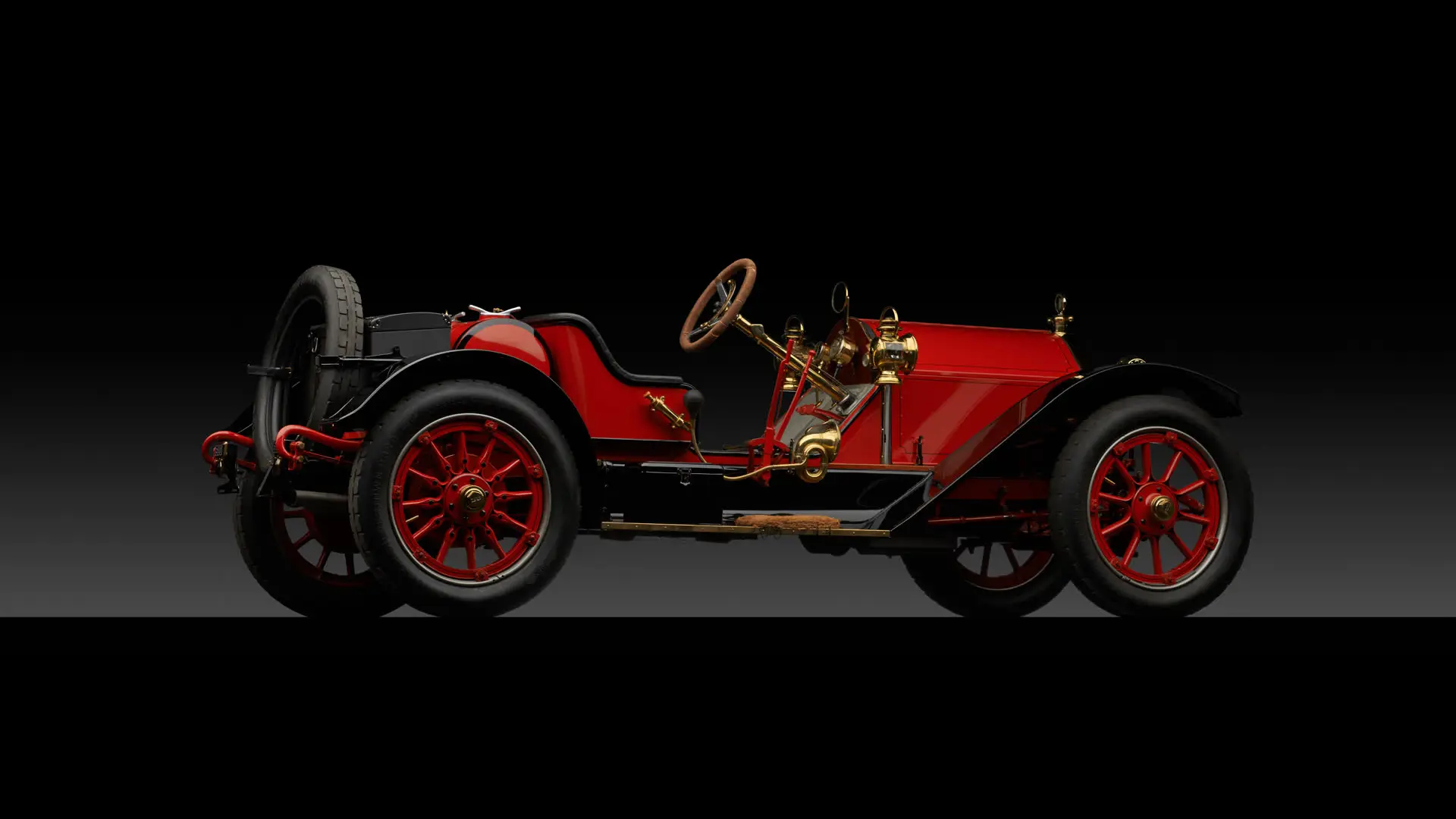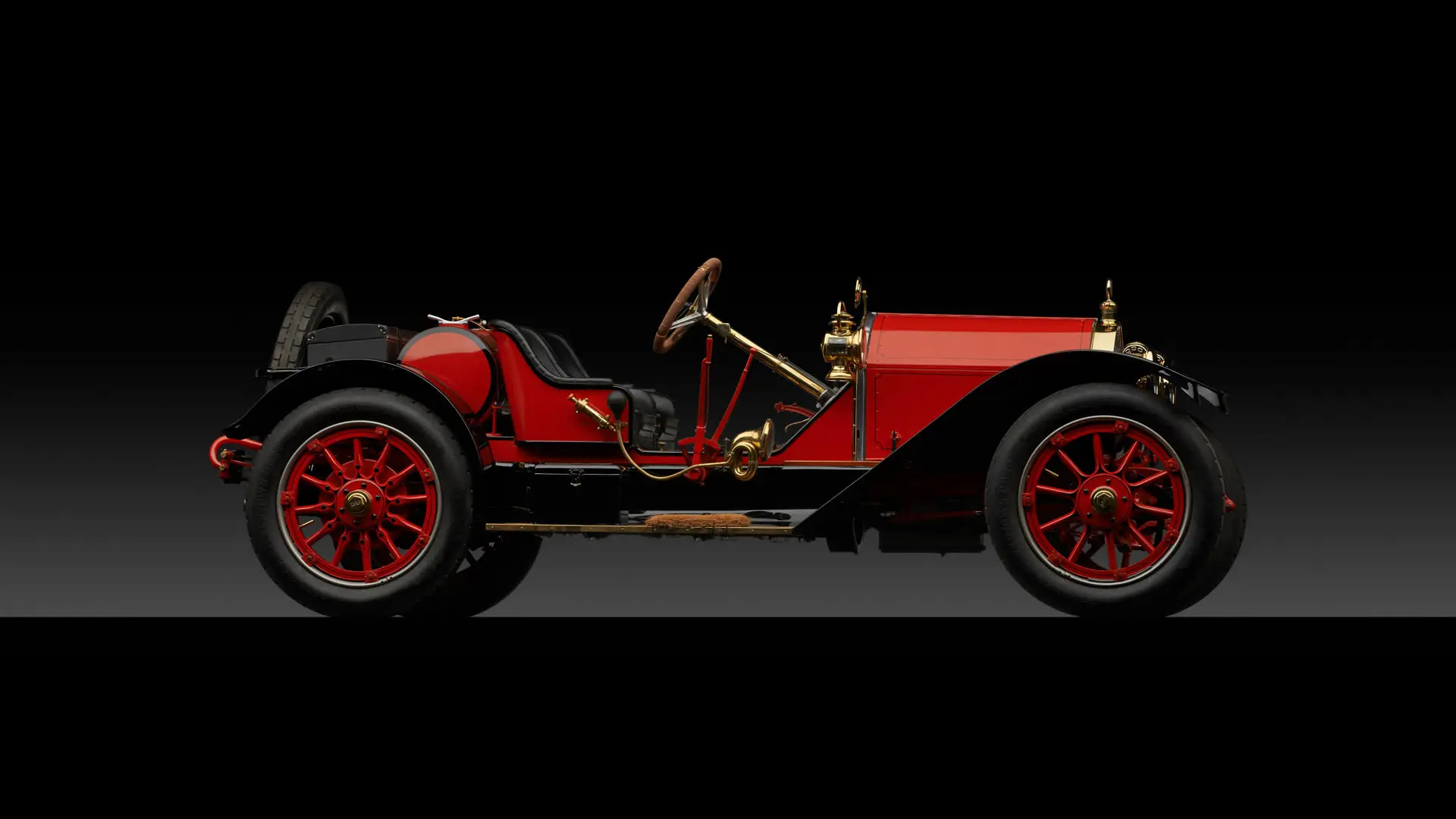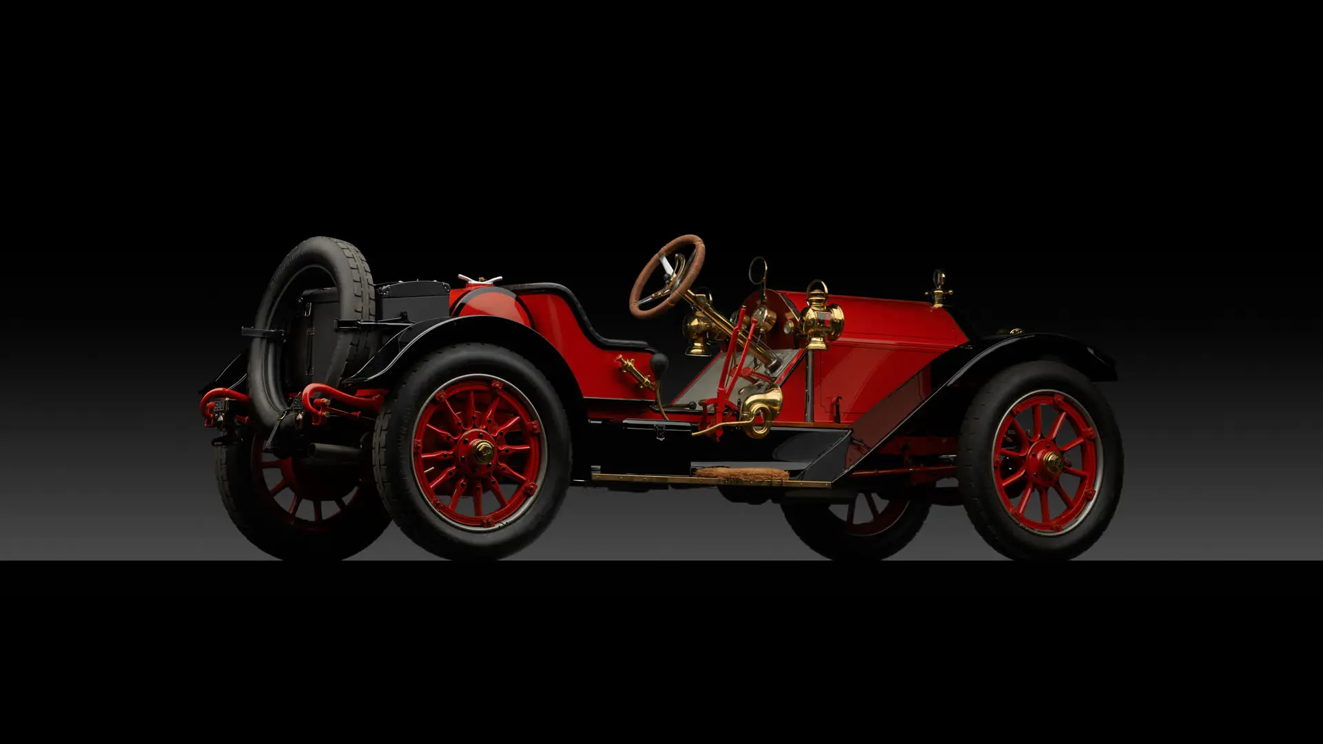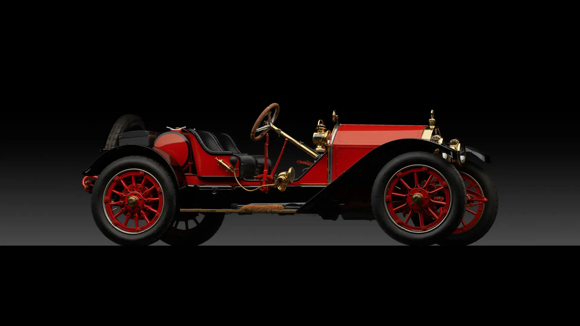 The production version of that car was the machine offered here, the Model A Bear Cat of 1912. (This year only, the Bear Cat was spelled with two words by the factory.) It was powered by a Wisconsin-built mill that Stutz historian Raymond Katzell referred to as “of appropriate size, that had already accumulated a splendid record for stamina and performance in racing.” Harry Stutz’s mechanical brilliance increased the engine’s performance to an estimated 60 horsepower, which was fed to the rear wheels through a transaxle—a technological advancement that was some five decades ahead of its time. When installed on a 120-inch wheelbase chassis with the Bear Cat’s barely-there bodywork, which was just seats and tanks, the Wisconsin T-head four resulted in superb speed from an already extremely lightweight performance-designed chassis.
