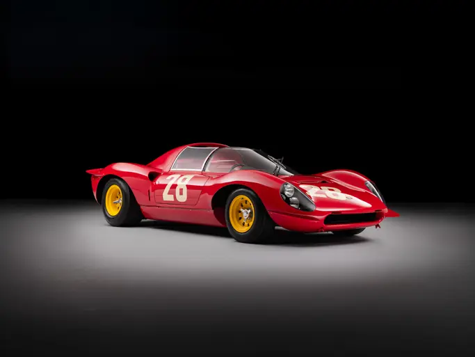 The next example in this trio of important Ferraris is a 1967 Ferrari Dino 206 S, chassis No. 032, being one of only two examples fitted with the most powerful Tipo 233 engine that contained the final evolution of the Dino 206 S engine development. Although subjective, the car is widely regarded as one of the most beautiful sports racers of the 1960s, if not in all automotive history.