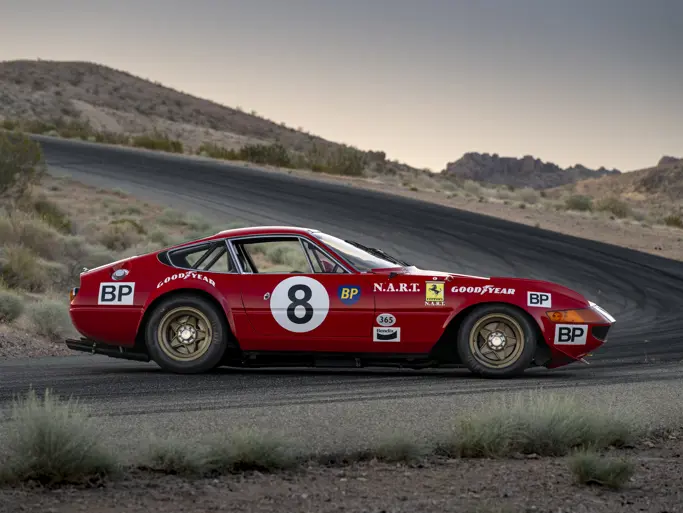 The 365 GTB/4 Daytona Competizione is the first of five third-series examples built, sold new to Luigi Chinetti’s NART team, and campaigned at Le Mans and Daytona on multiple occasions