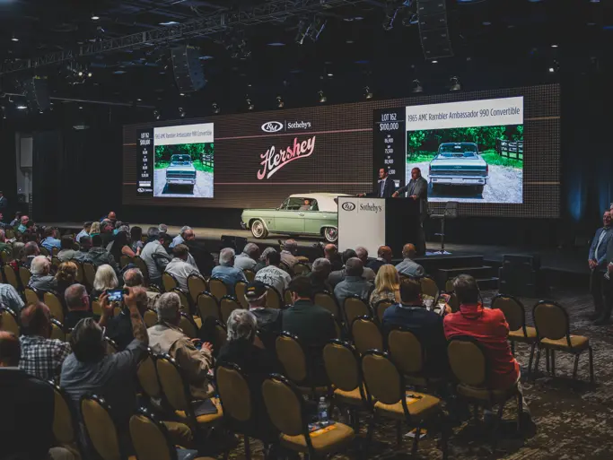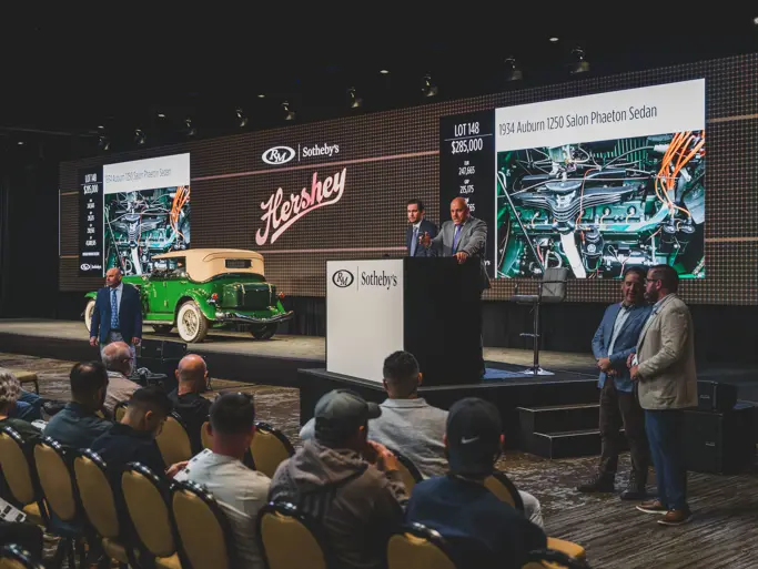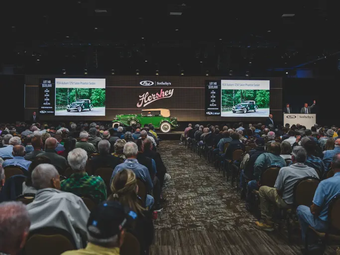 BLENHEIM, Ontario, October 13, 2025 - RM Sotheby’s returned to the Hershey Lodge for its 19th annual sale, held during the Antique Automobile Club of America’s (AACA) Eastern Division Fall Meet. Over the two-day event, RM Sotheby’s achieved $13.79 million in total sales with 97 percent of all lots finding new homes, drawing a packed room of bidders and underscoring Hershey’s place as one of the most important gatherings in the collector car calendar.
