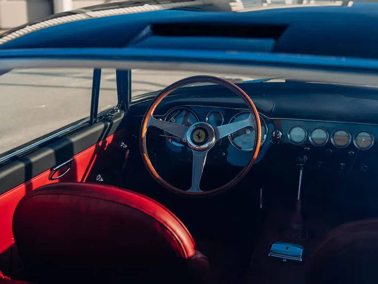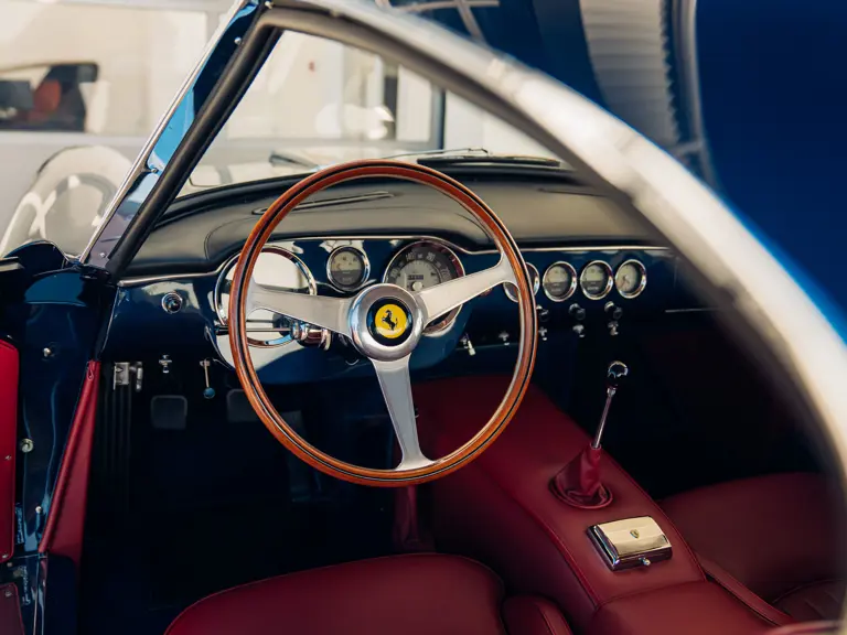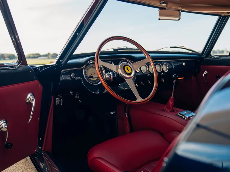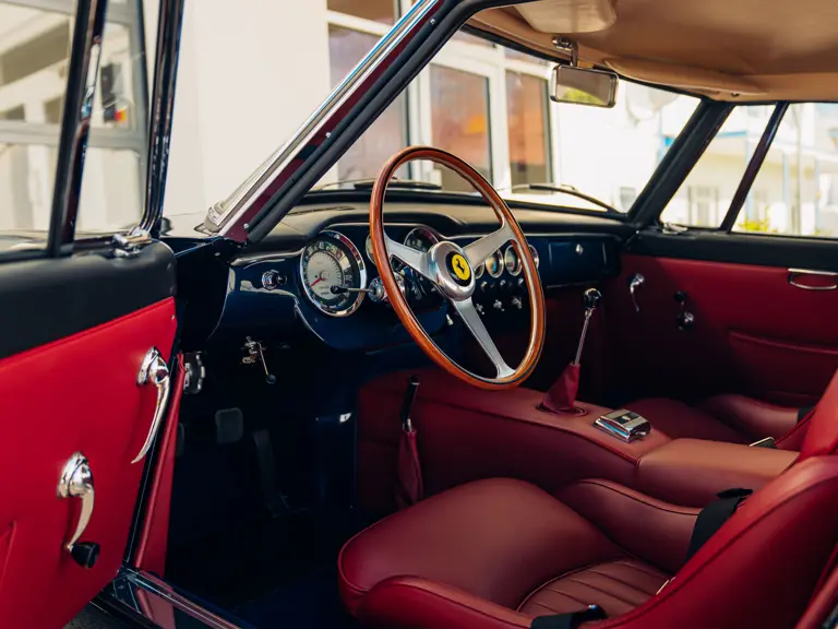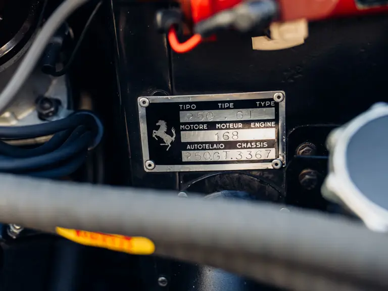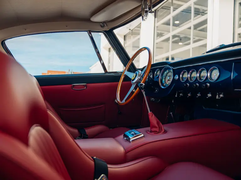 The refreshingly transparent history of this particular car, chassis number 3367 GT, begins in early 1962; its chassis having been completed at Maranello on January 10, prior to despatch to master craftsman Sergio Scaglietti’s coachworks in Modena. As a late production, second series chassis designated for completion to “Lusso” specification, the car was fitted with a steel body, albeit with an aluminium bonnet, doors and boot lid. As with other Series 2 cars, 3367 GT featured a distinctive horizontal roof vent, wider radiator grille and reprofiled rear wheel arches; the latter, on the driver’s side, accommodating the filler cap previously recessed into the boot lid on earlier cars.