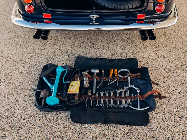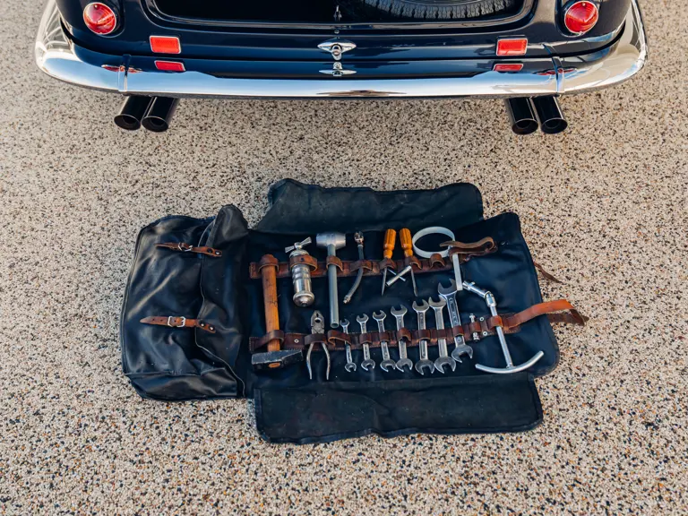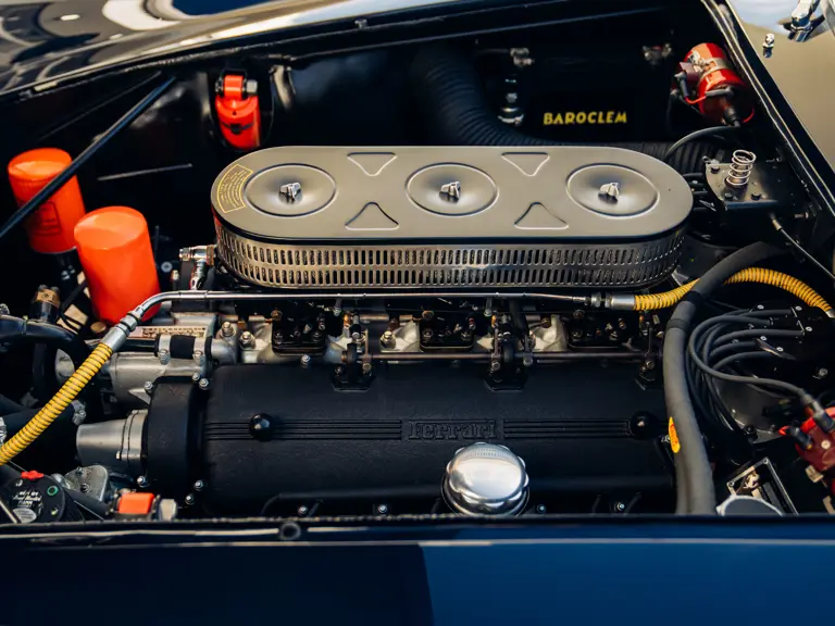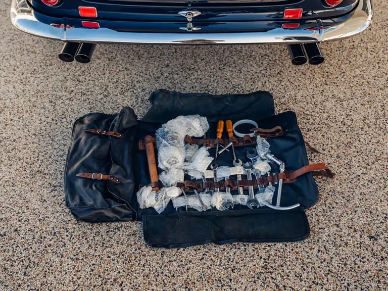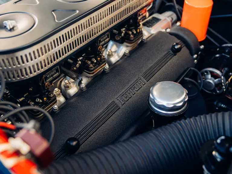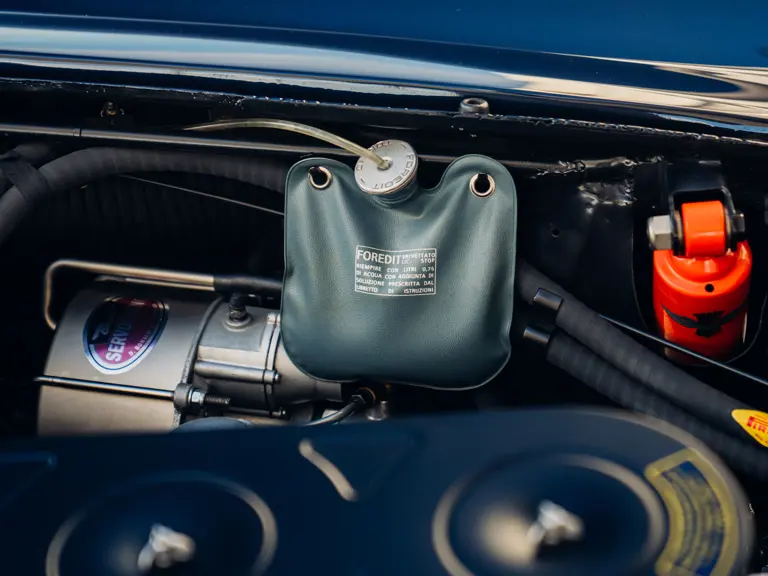 Most recently exhibited at the exclusive Concours of Elegance at Hampton Court in 2019, 3367 GT has since been featured in the August/ September 2019 edition of Cavallino magazine and has continued to be enjoyed privately by its owner. As if to underline his continued commitment to exacting maintenance, it has recently benefitted from the fitment of a new exhaust, a comprehensive brake overhaul and a further gearbox rebuild by Bob Houghton–at a combined cost of over £33,000–while a further ‘refurbishment’ respray in Blu Notte Metallizato was undertaken in May 2024 by highly regarded expert Ross Packard Paintwork at a cost of some £25,728. So exacting are this owner’s standards and attention to detail, that the car has a special pair of fully bespoke seat covers, so that no wear or discolouration can affect the Connolly hides of the seats. The owner has also furnished the car with two sets of, period correct, Borrani wheels; a slightly wider ‘driving’ set shod with Avon tyres and the car’s (standard specification) show wheels (which wear correct-type Pirelli Cinturato rubber) and are in concours ready condition. Each set even has their own respective set of spinners allocated to suit.