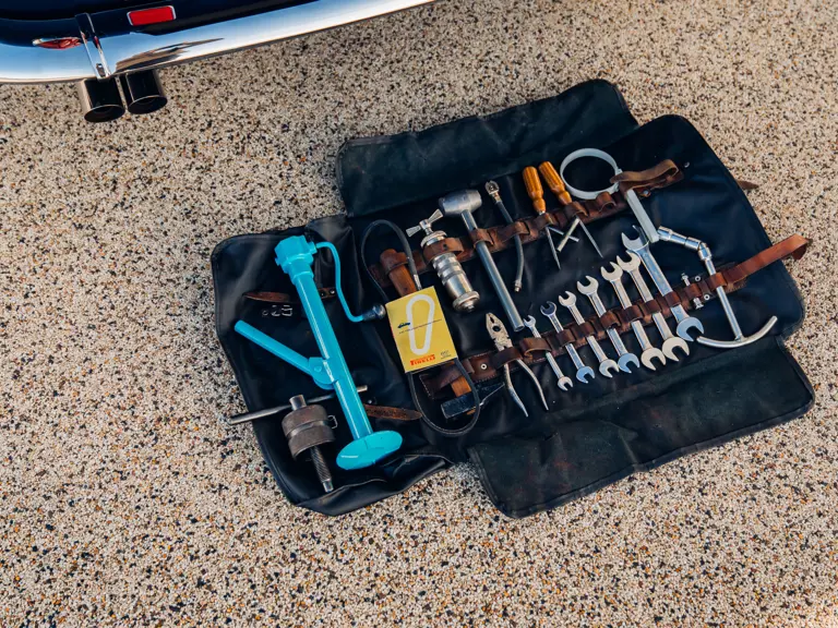 - Further accompanied by an owner’s manual with leather pouch, tool set with leather roll, spare set of wheels and tyes as well as bespoke seat covers