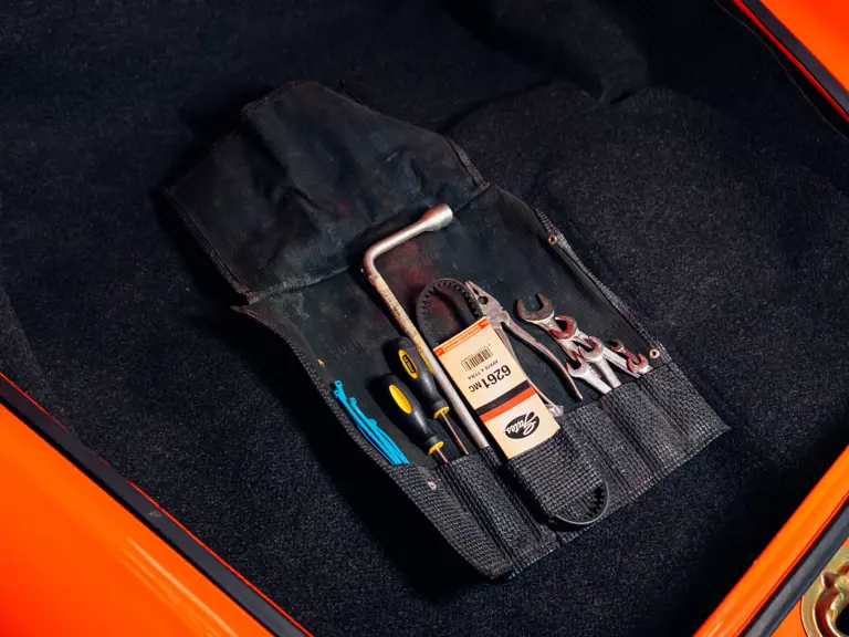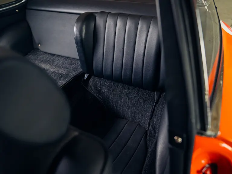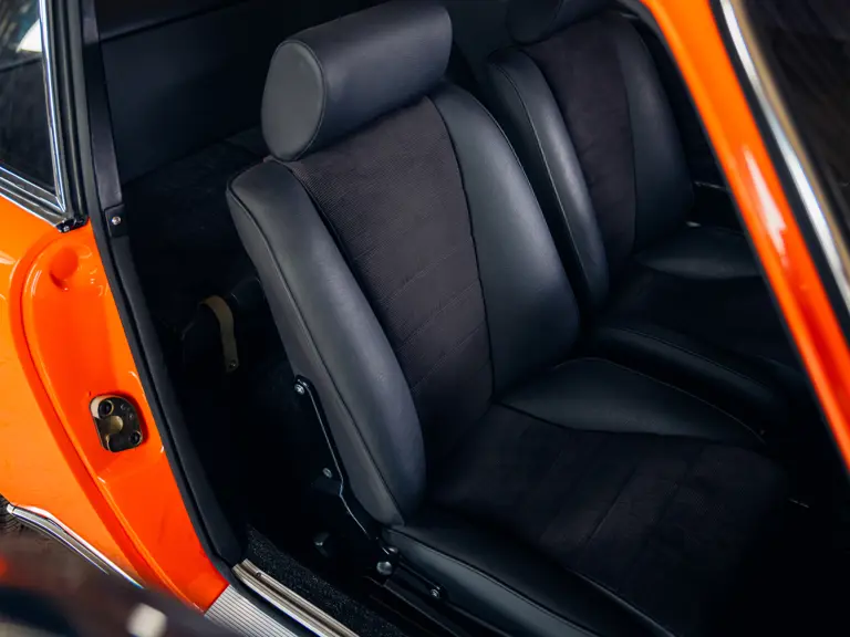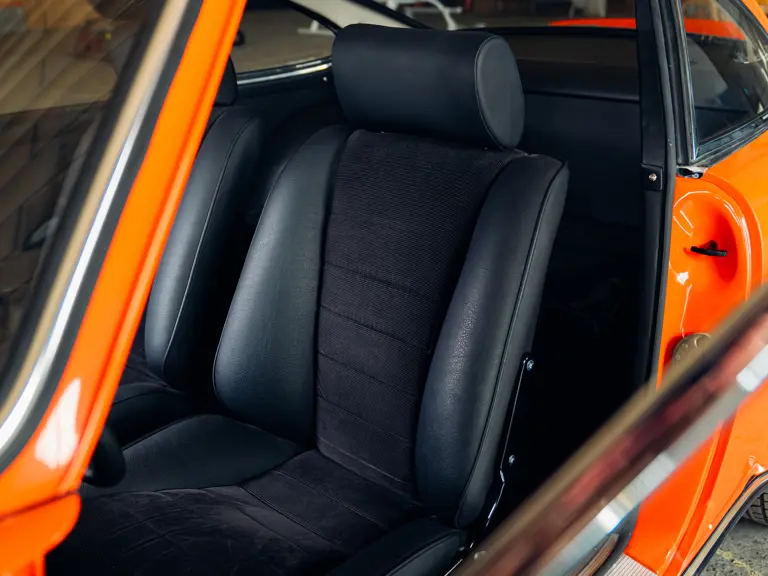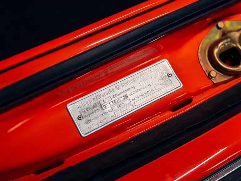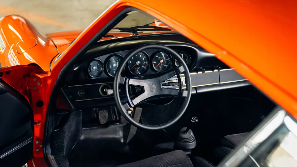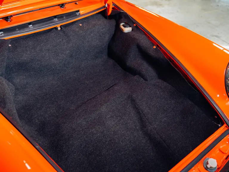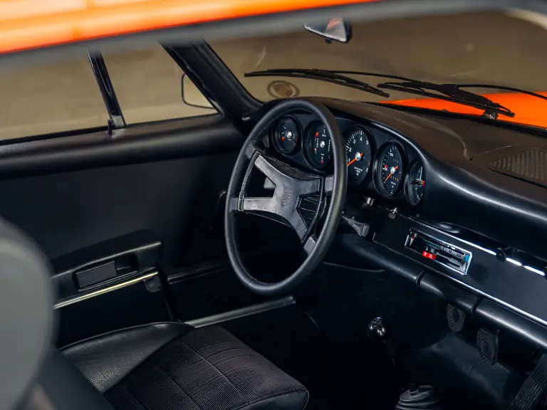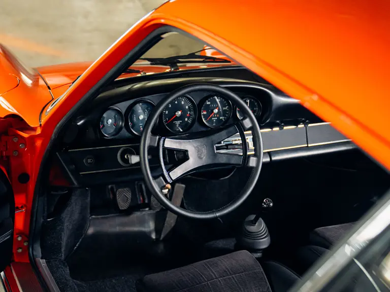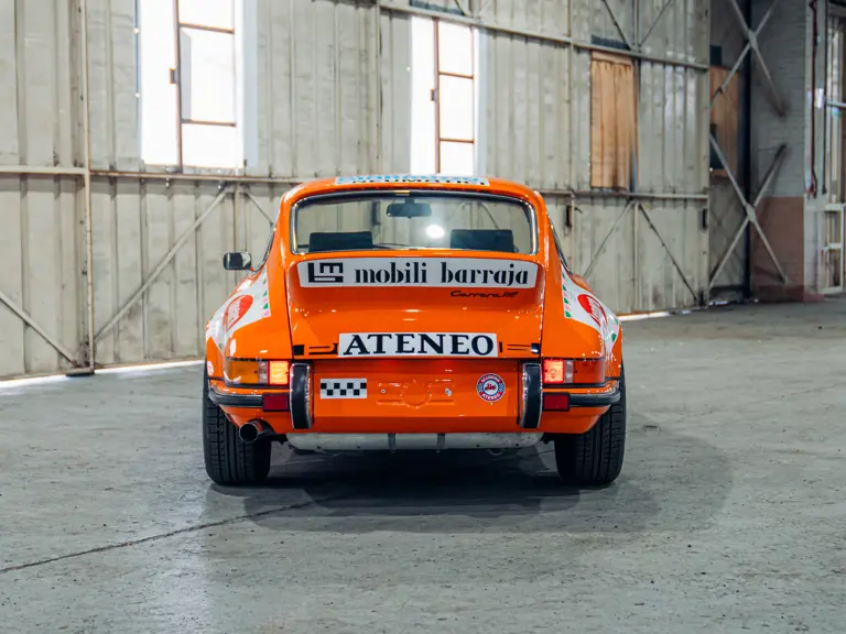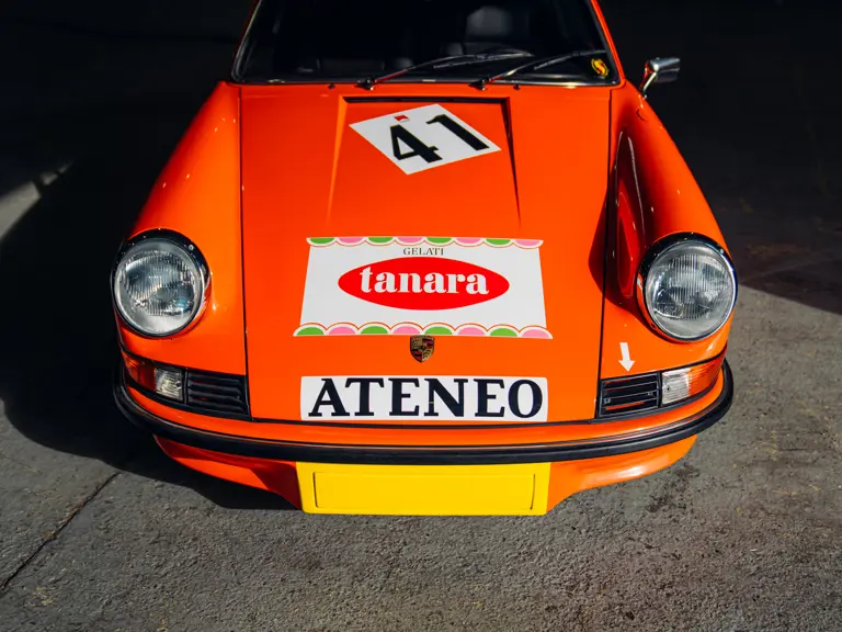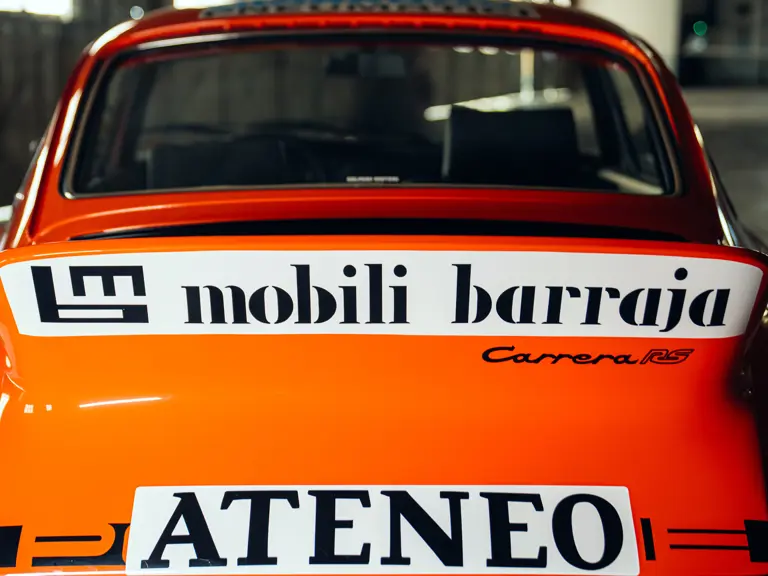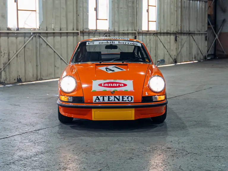 Completed by Porsche in February of 1973, this particular Carrera RS was designated for the Italian market. Built to Touring specification and finished in Blutorange (Tangerine) over a black leather interior with corduroy seat inserts, the car was optioned with a limited slip differential. Its first owner would be Ing. Renato Baneie and the car was registered in his name with the Palermo registration number of PA 413985.