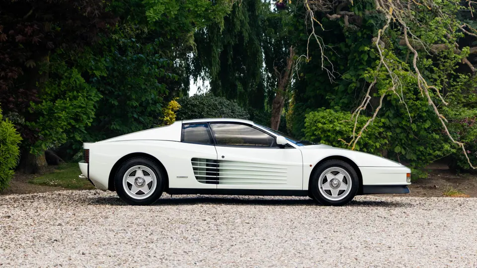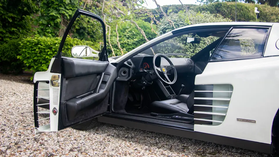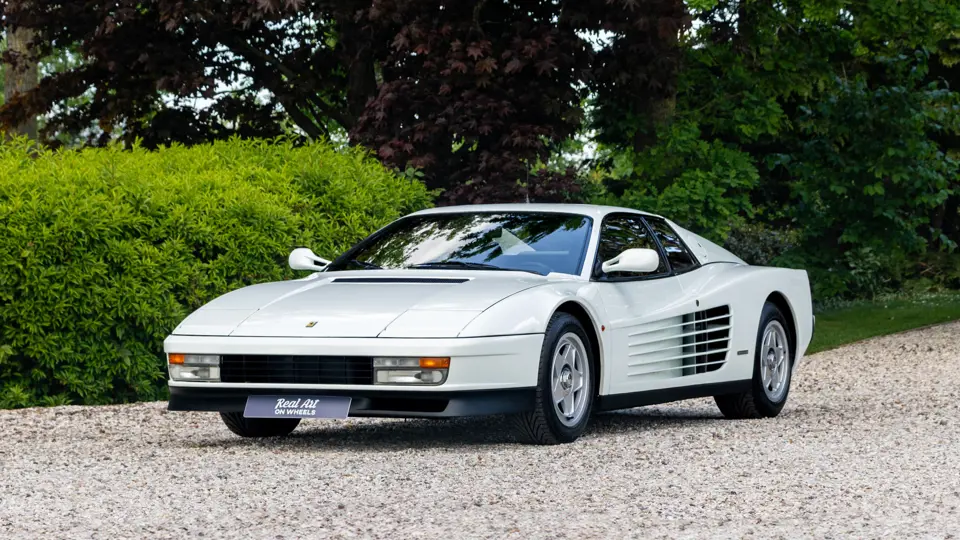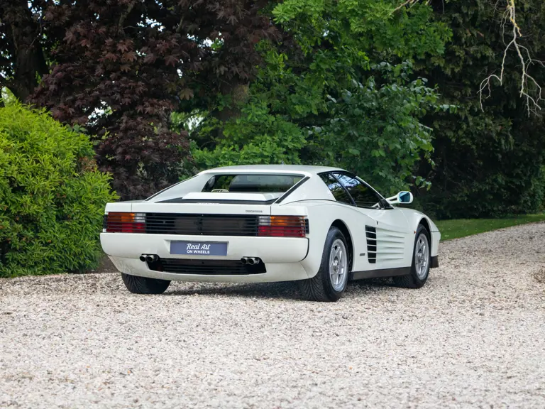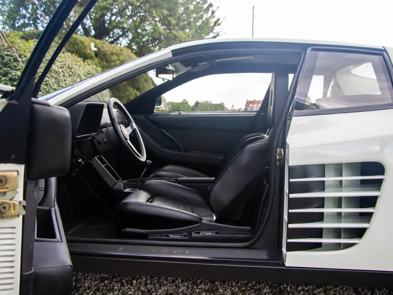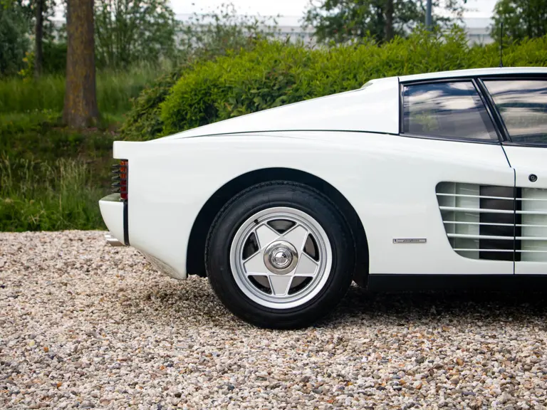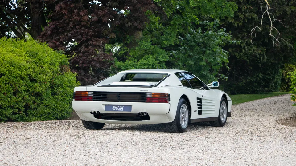 On 26 February 1988, this Ferrari Testarossa "Monodado" was delivered to its first owner. A Swedish gentleman residing in Belgium. The car was delivered through Ferrari dealership "Garage Francorchamps" in Brussels. Originally delivered in a highly desirable color combination of white over black interior. Made iconic by blockbusters as Miami Vice and the Wolf of Wallstreet.