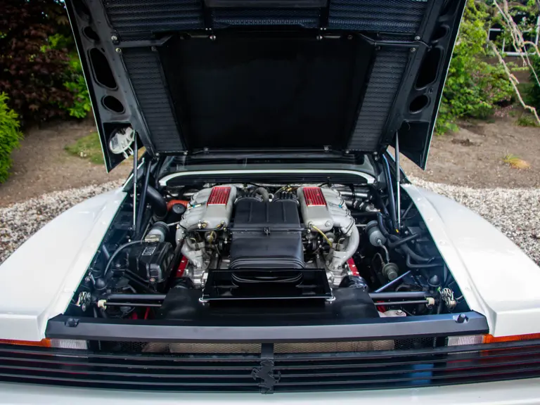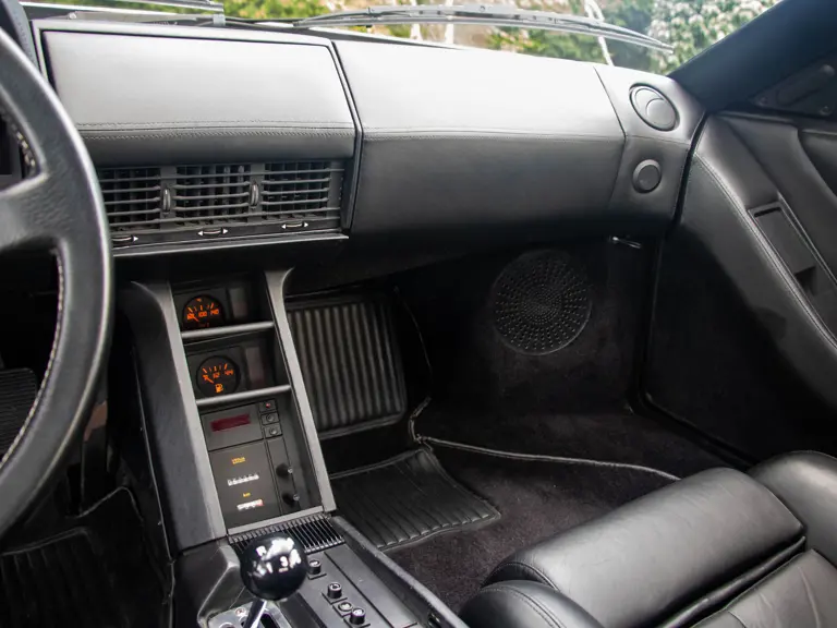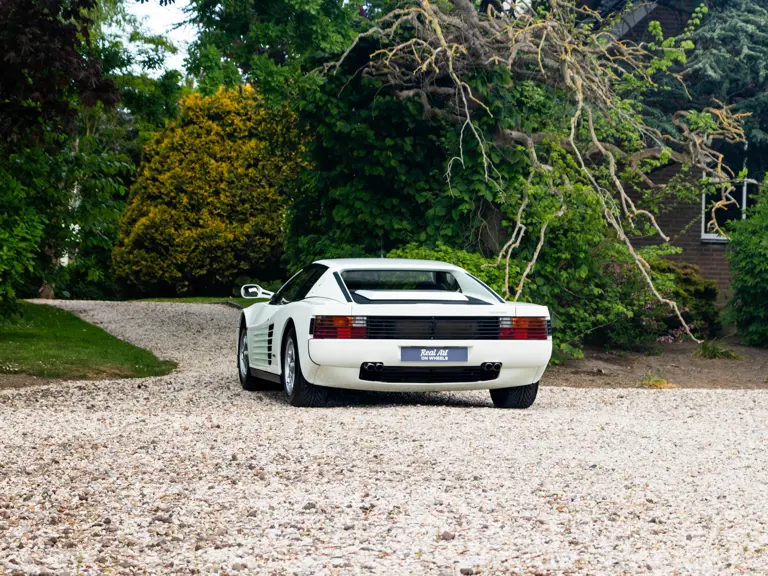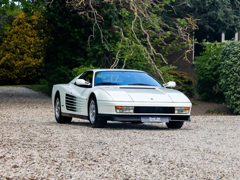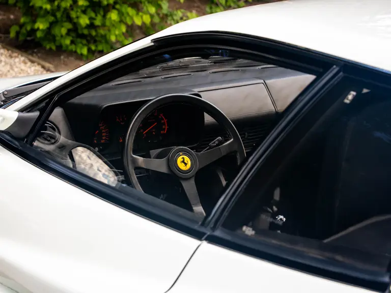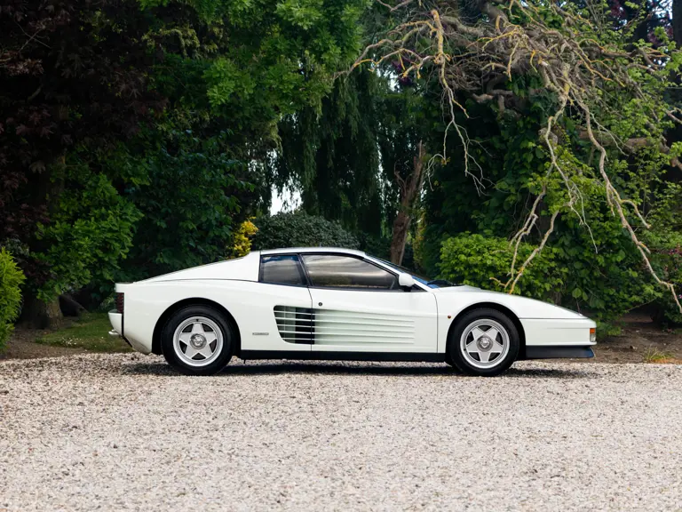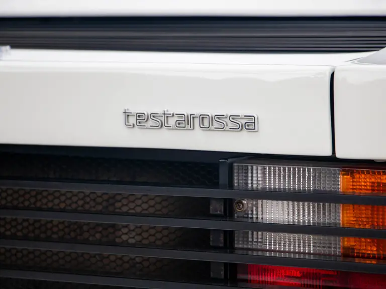 On 26 February 1988, this Ferrari Testarossa "Monodado" was delivered to its first owner. A Swedish gentleman residing in Belgium. The car was delivered through Ferrari dealership "Garage Francorchamps" in Brussels. Originally delivered in a highly desirable color combination of white over black interior. Made iconic by blockbusters as Miami Vice and the Wolf of Wallstreet.