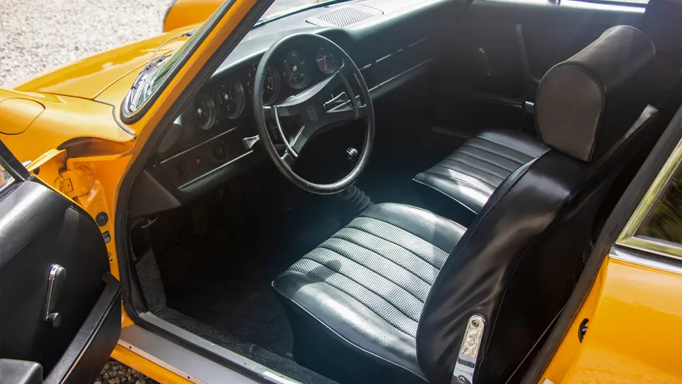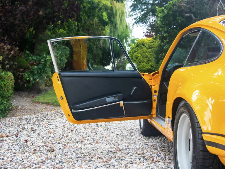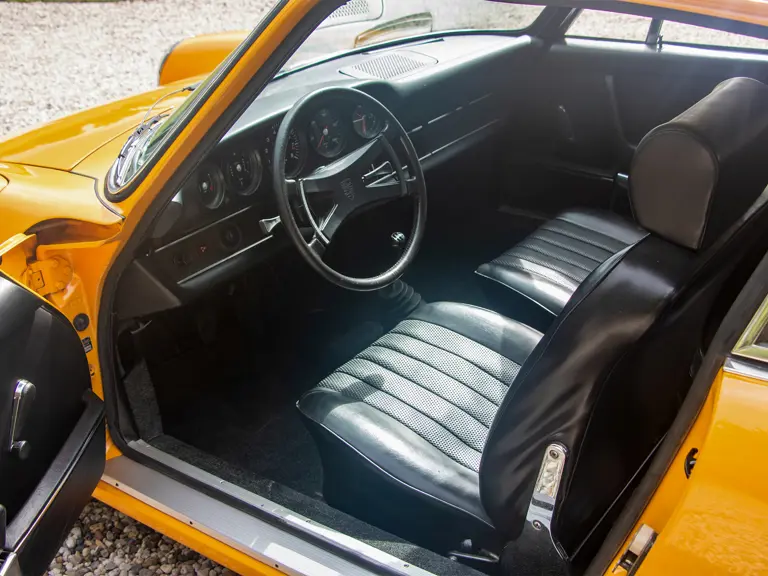 This 1973 Porsche 911 Carrera 2.7 RS was originally built for the Belgium/Luxembourg market. The car left the factory as a M472 Touring Model in Signal Yellow 5252 with a Black Leatherette interior. Exactly as how it looks today. In 1982, the car was acquired by a Mr. Bataille from Hyères, a Mediterranean coastal town in the south of France.
