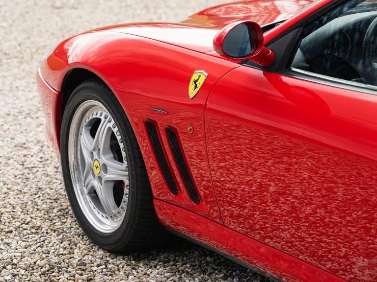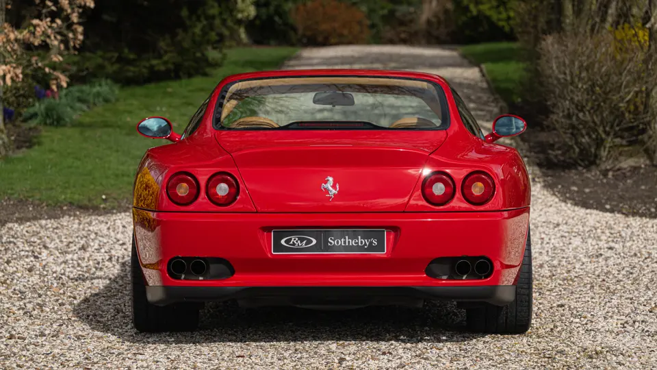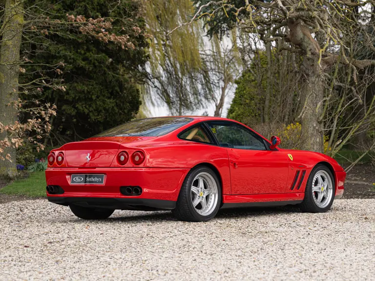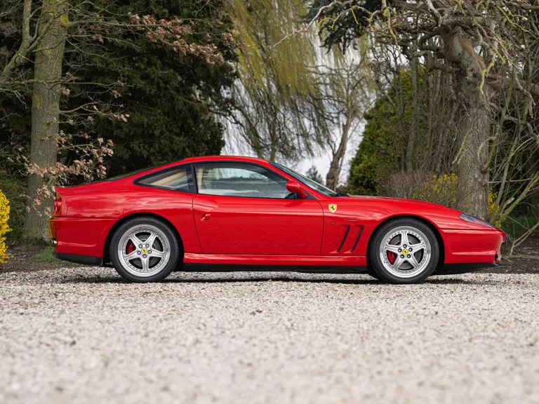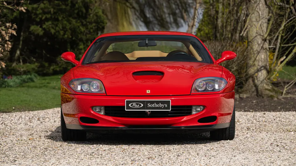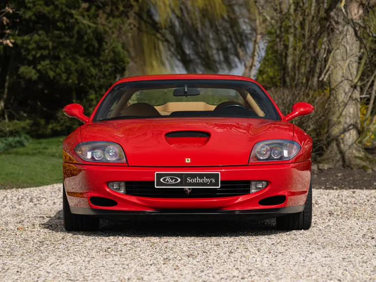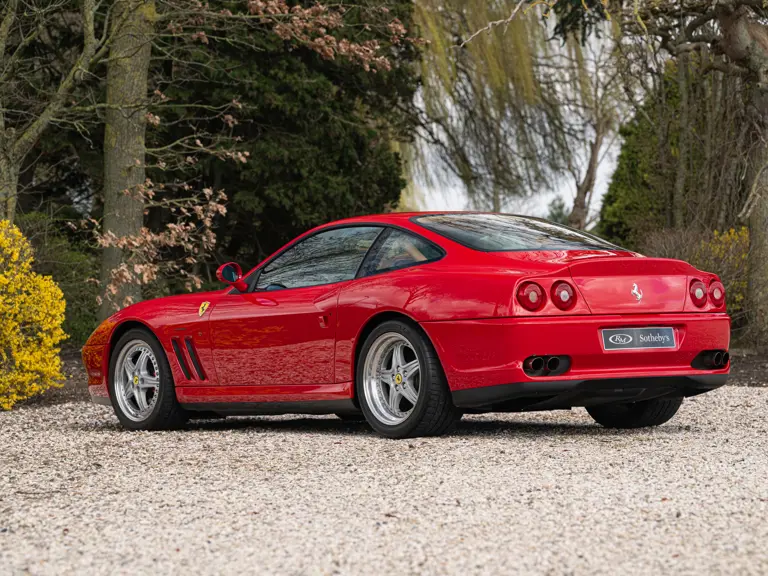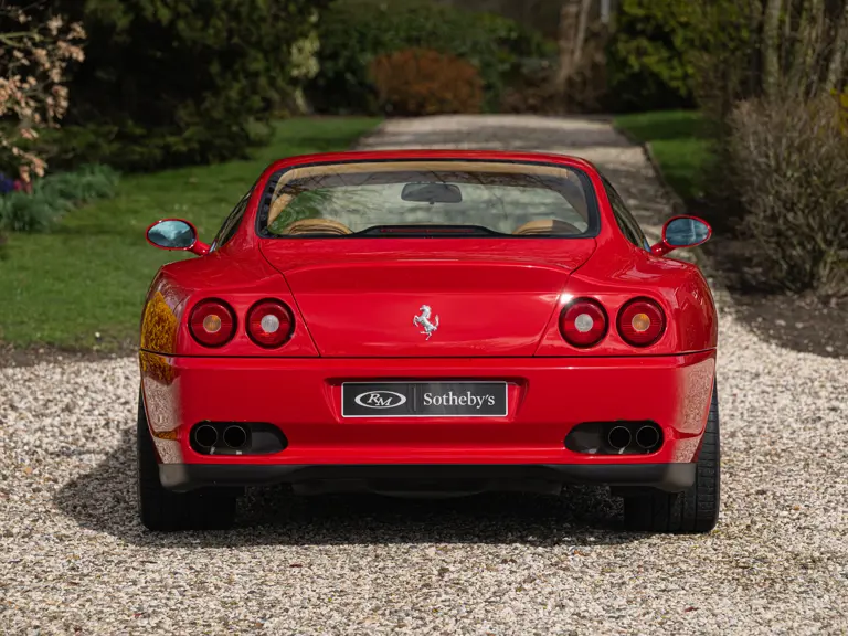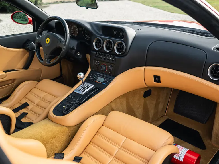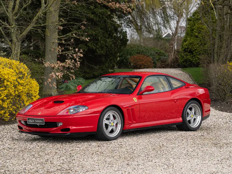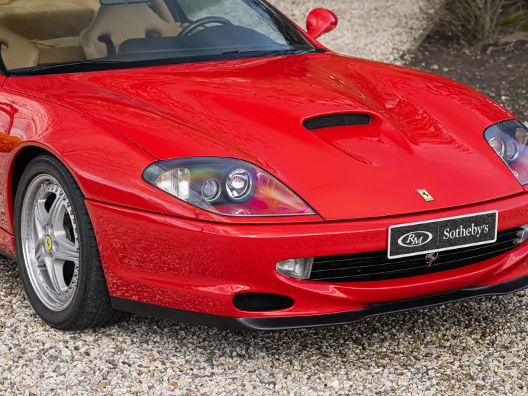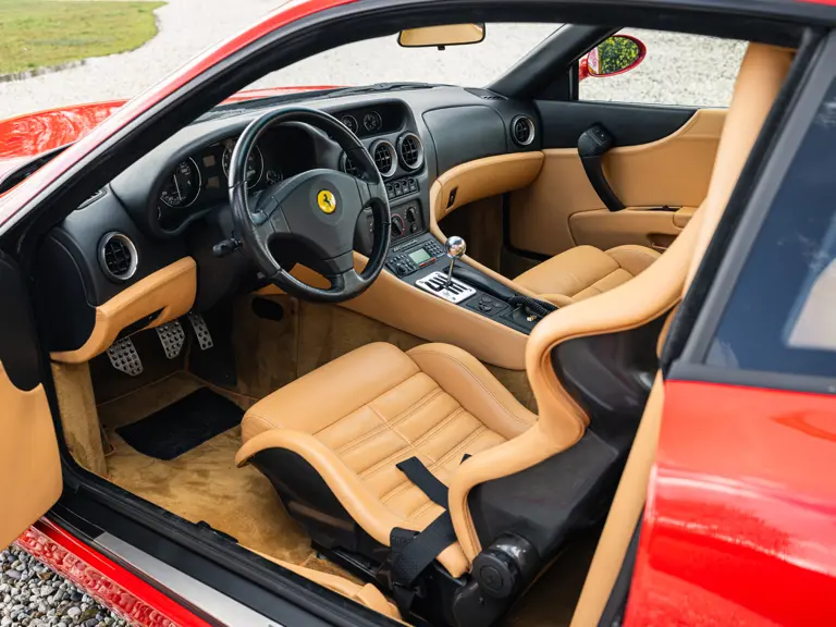 Finished in Rosso Corsa over Beige Connolly leather with carpets in Castoro (light brown) and specified with the Fiorano handling pack, carbon bucket seats, four-point racing-style harnesses, plus a leather-trimmed roll cage: to all intents and purposes the Ferrari 550 Maranello offered here is a ‘World Speed Record’ edition made to celebrate the model setting a string of production car average speed records.