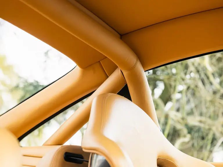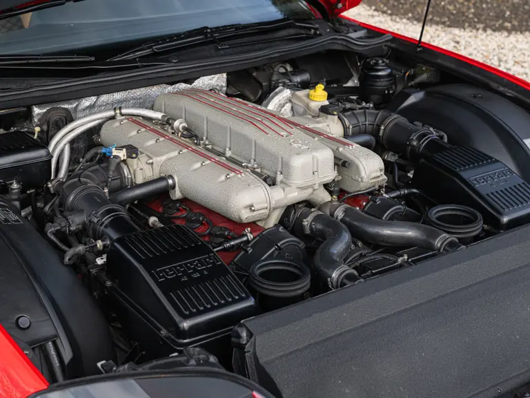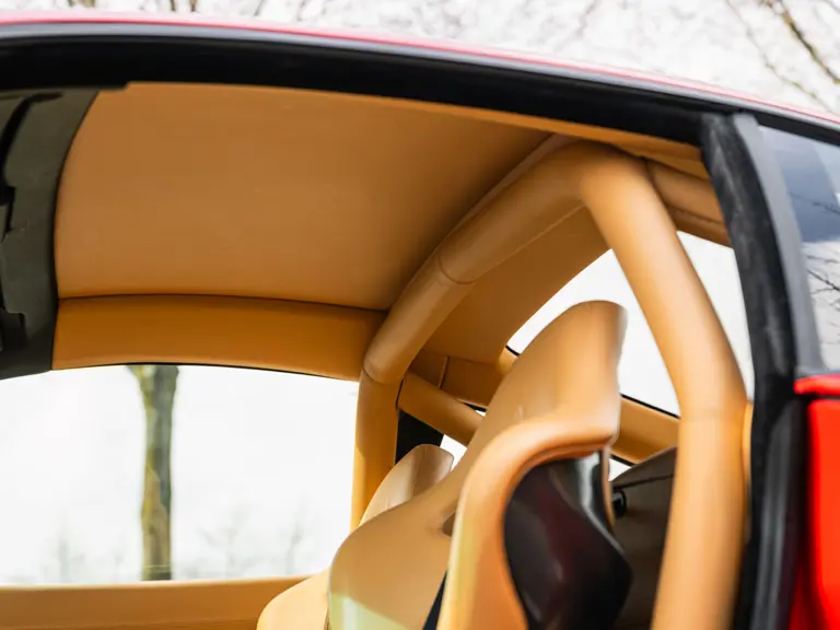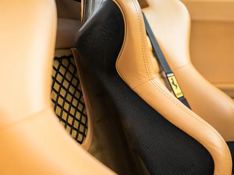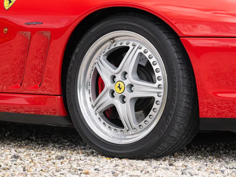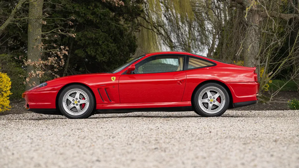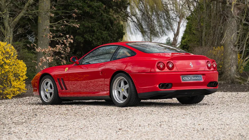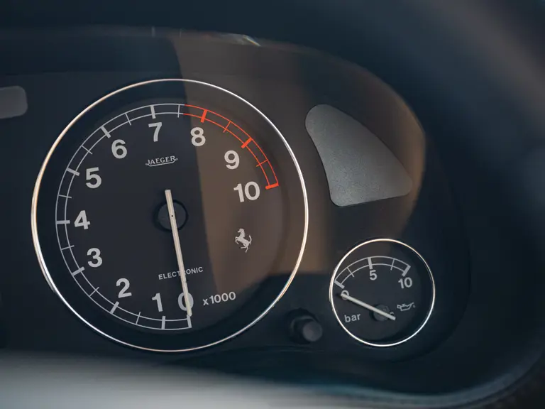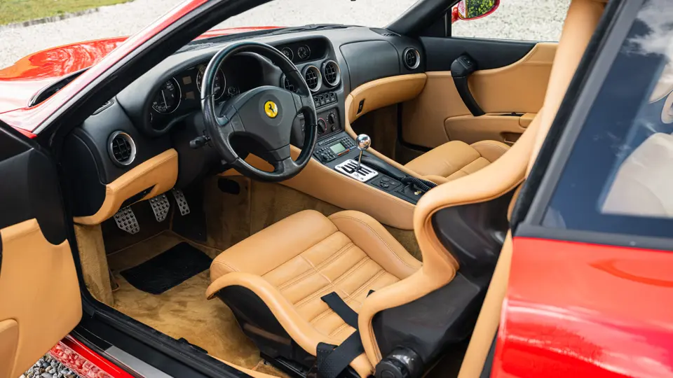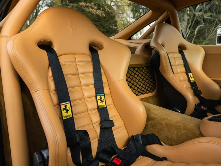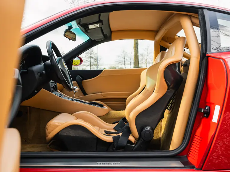 Finished in Rosso Corsa over Beige Connolly leather with carpets in Castoro (light brown) and specified with the Fiorano handling pack, carbon bucket seats, four-point racing-style harnesses, plus a leather-trimmed roll cage: to all intents and purposes the Ferrari 550 Maranello offered here is a ‘World Speed Record’ edition made to celebrate the model setting a string of production car average speed records.